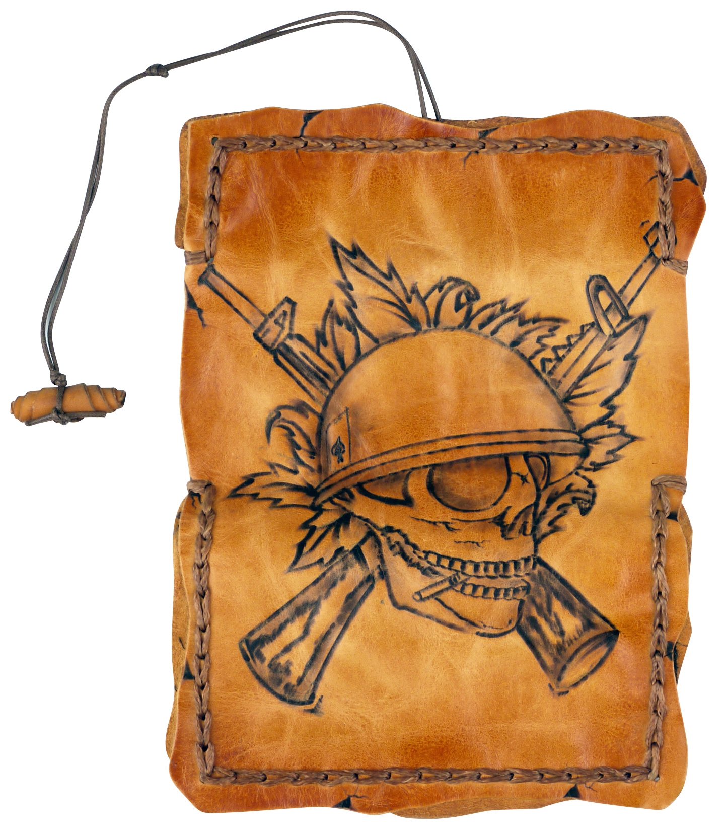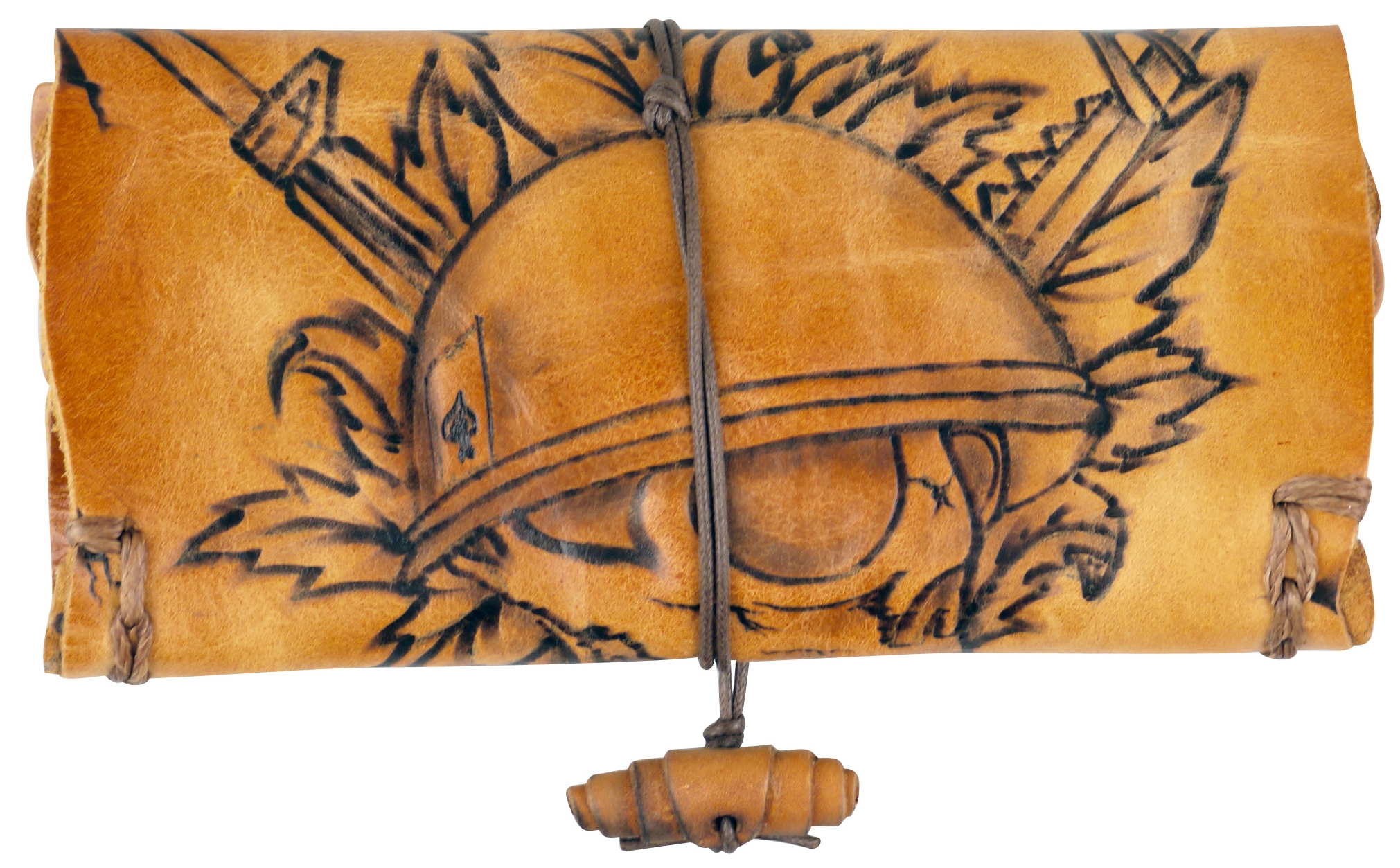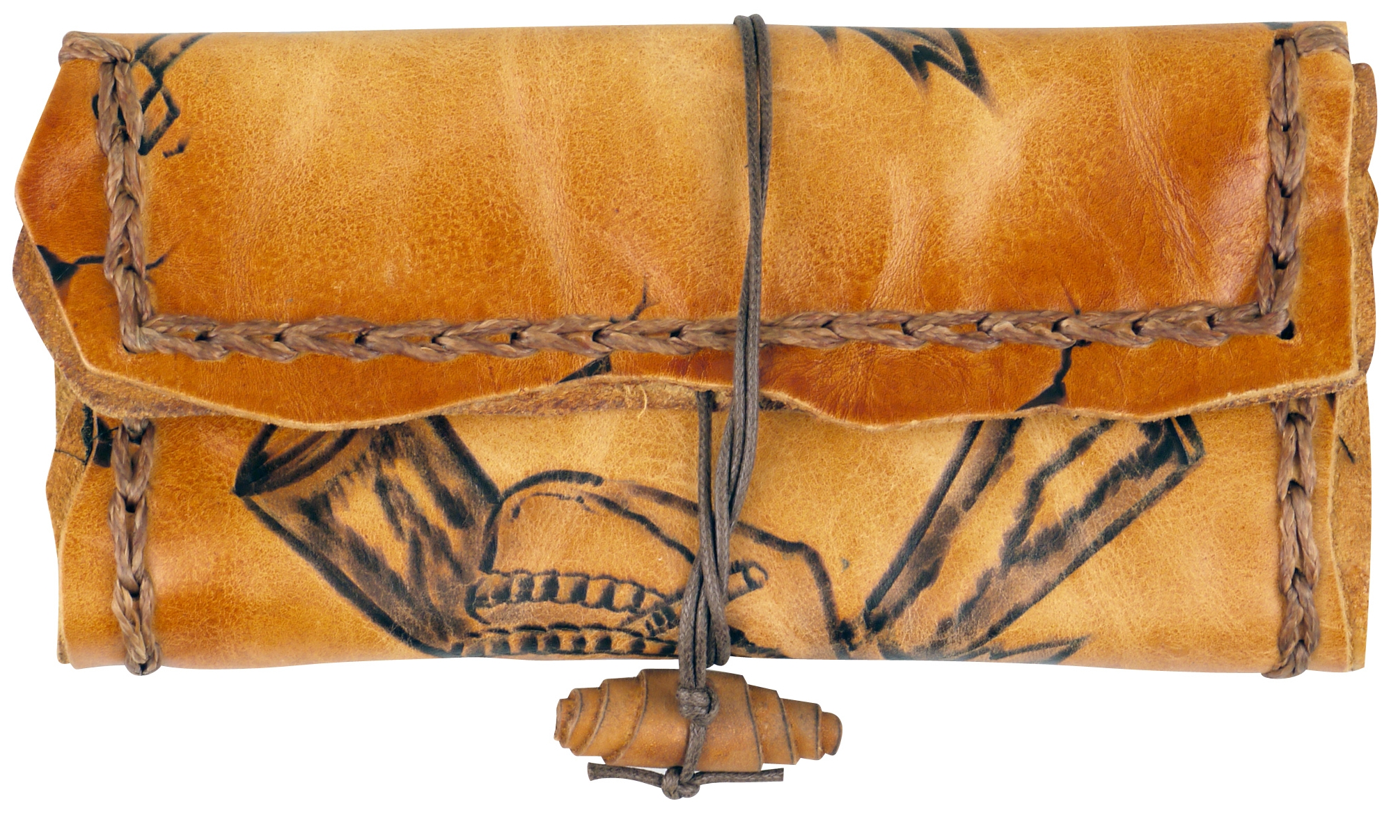 Startseite » Accessoires » Drehertaschen » Original MR Drehertasche Leder braun antik Pyrografie Skull 16.5cm