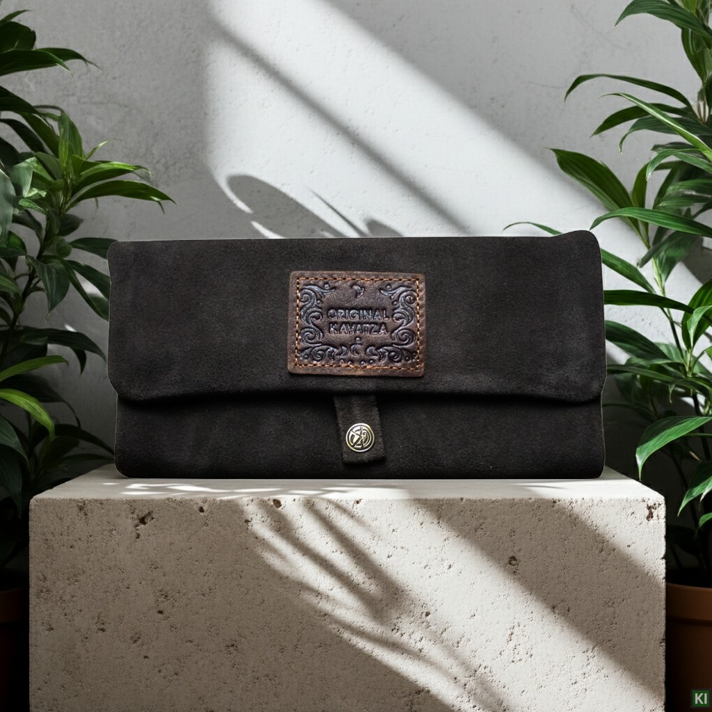 Kavatza Manousso P02 Wildleder schwarz Joint Tabaktasche Drehertasche Tabakbeutel