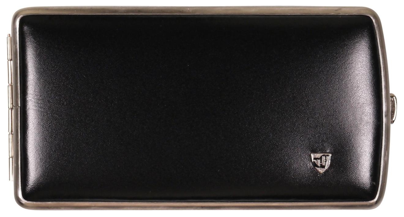 Startseite » Accessoires » Zigarettenetuis » Zigarettenetui vom Hofe Metall Leder schwarz Eve mit Nickelrand 120mm-9er