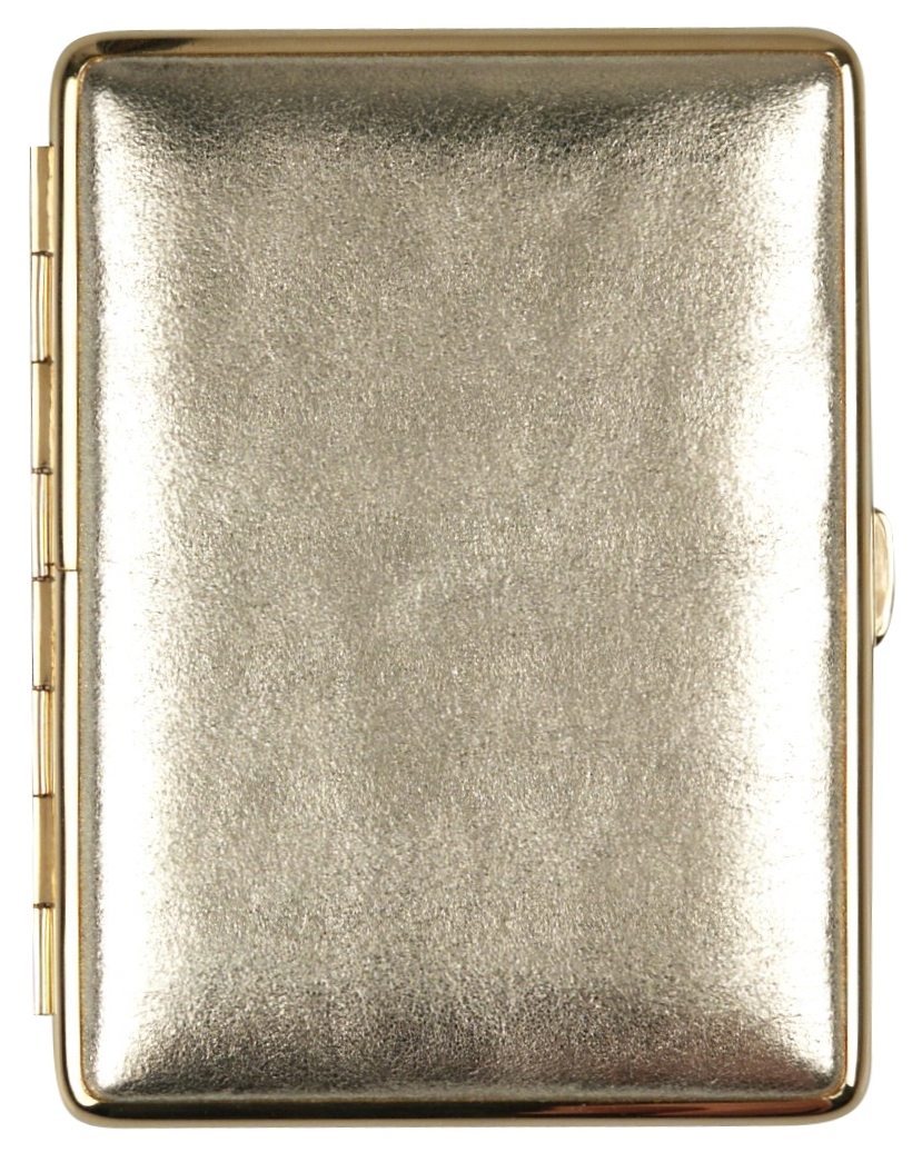 Startseite » Accessoires » Zigarettenetuis » Zigarettenetui vom Hofe Metall Leder silberfarbend mit Goldrand Slim-100mm-18er