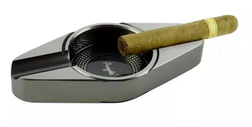 Zigarrenascher sind in Größe, Form und Design optimal auf Zigarren zugeschnitten. Dieser Metallascher ist ein sehr schöner, gut verarbeiteter Aschenbecher für Zigarren mit einer Ablage für Zigarren. Der Aschenbecher aus Metall ist aus Auminium, hat eine sehr schöne, moderne Form und ist mit einer dunkelgrauen Lackierung mit dem Angelo-Lago in der Mitte ausgeführt. Dieser Aschenbecher ist ein Blickfang und auch das ideale Geschenk für Zigarrenraucher oder Zigarrenraucherinnen. Erst mit dem richtigen Zigarrenascher kommt man in die richtige Stimmung um eine gute Zigarre genießen zu können.