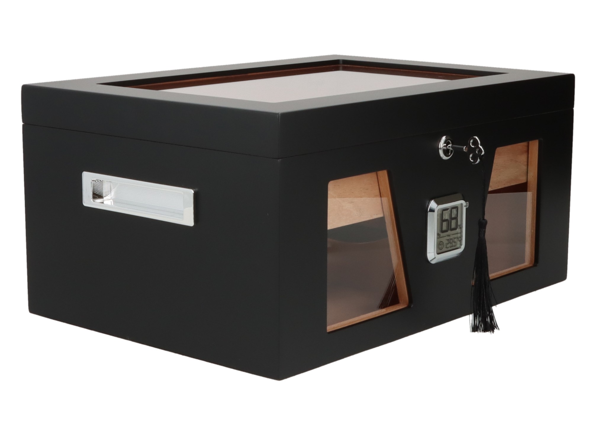 Angelo Humidor 3 Sichtfenster 2 schwarz offen - © raucher-xxl.de