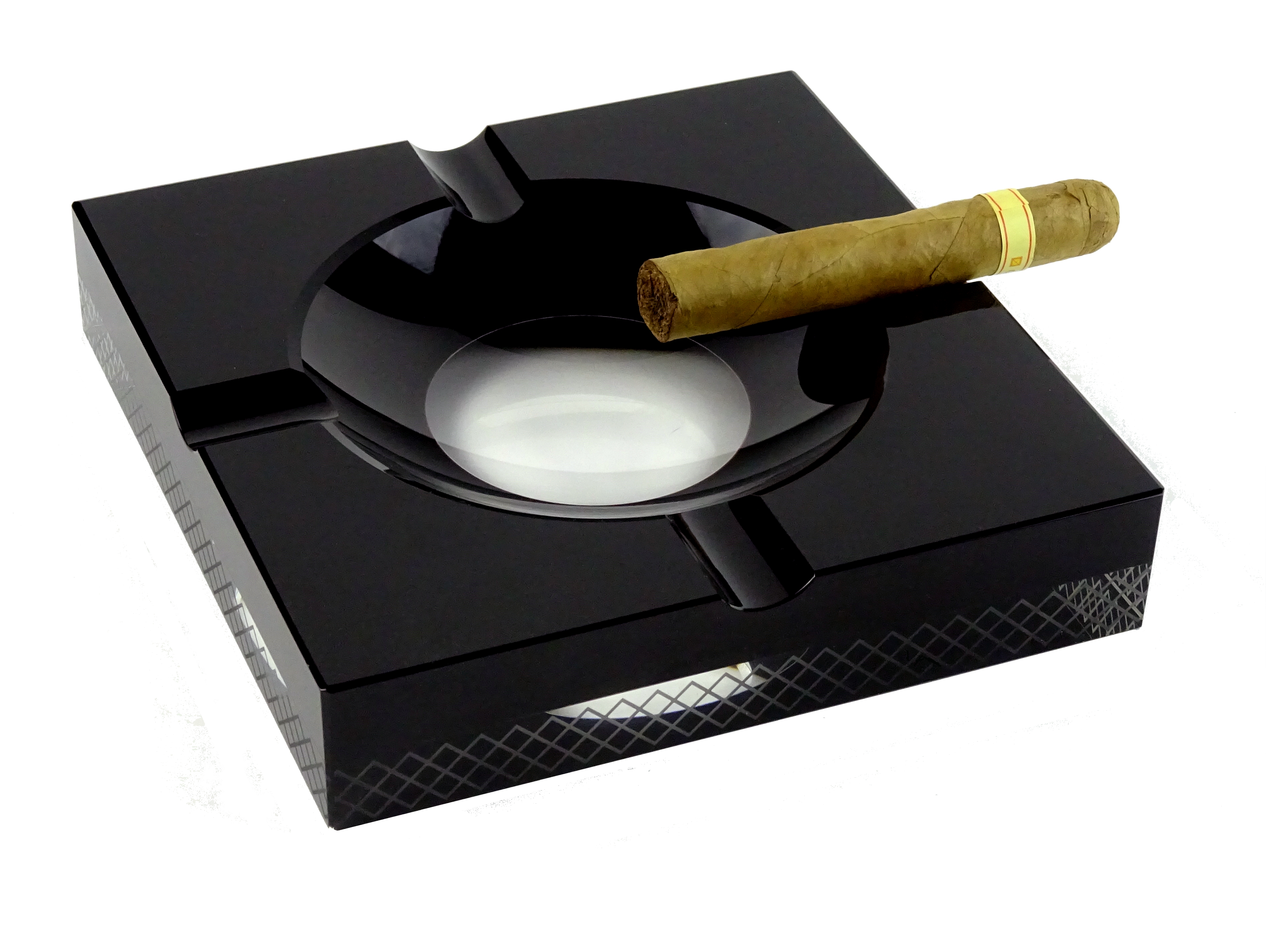 Angelo Design Zigarrenascher Kristall schwarz 4 Ablagen 20x20x4cm - © raucher-xxl.de