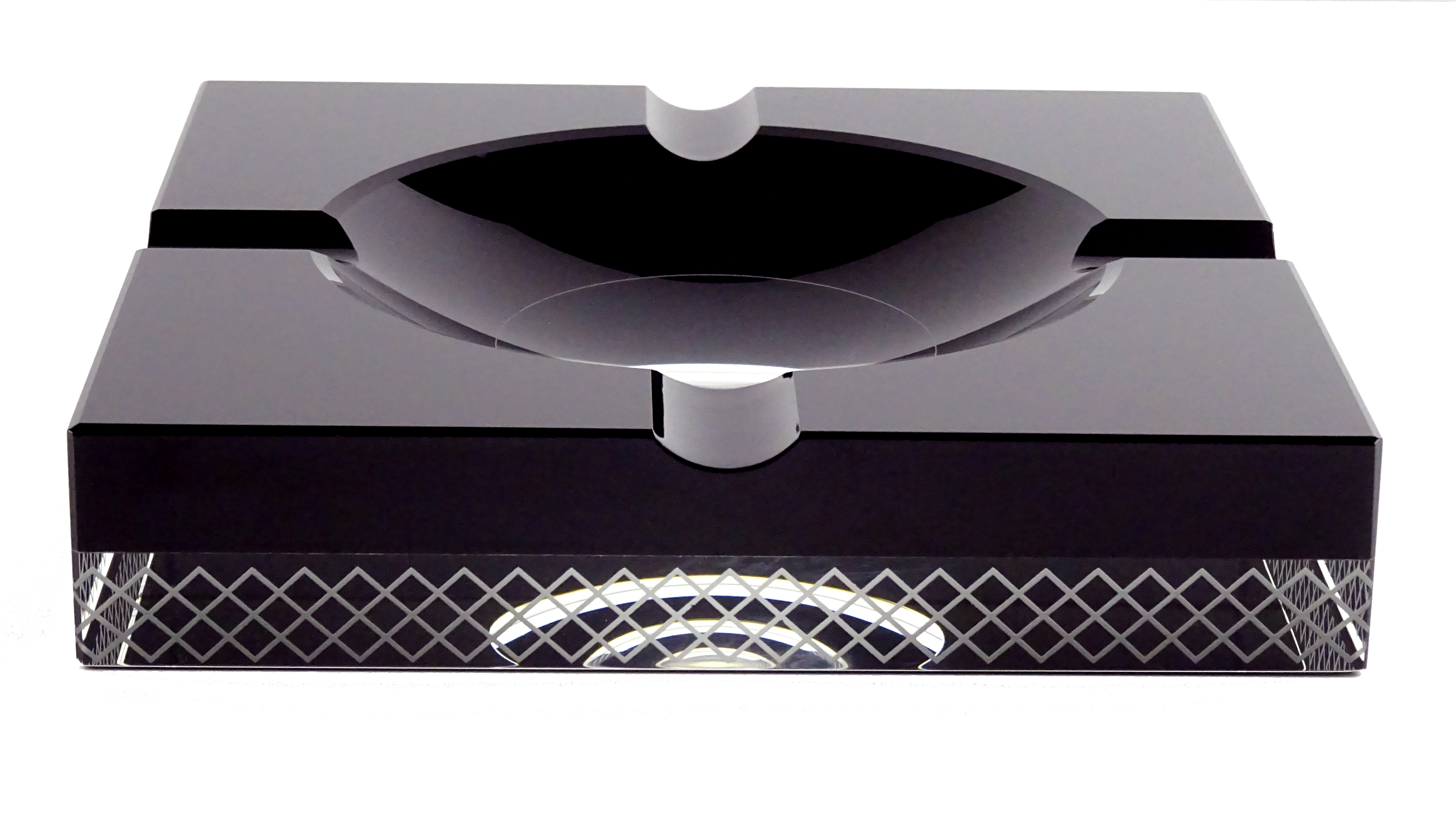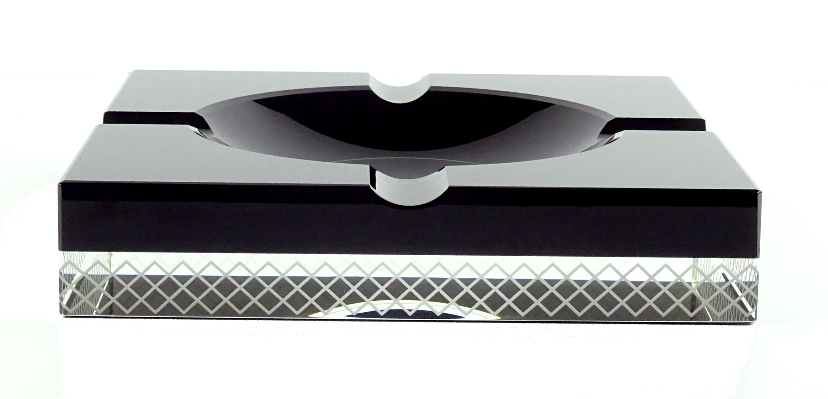 Angelo Design Zigarren aschenbecher Kristall schwarz 2-farbig rechteckig mit 4 Ablagen 20x20x3,8 cm