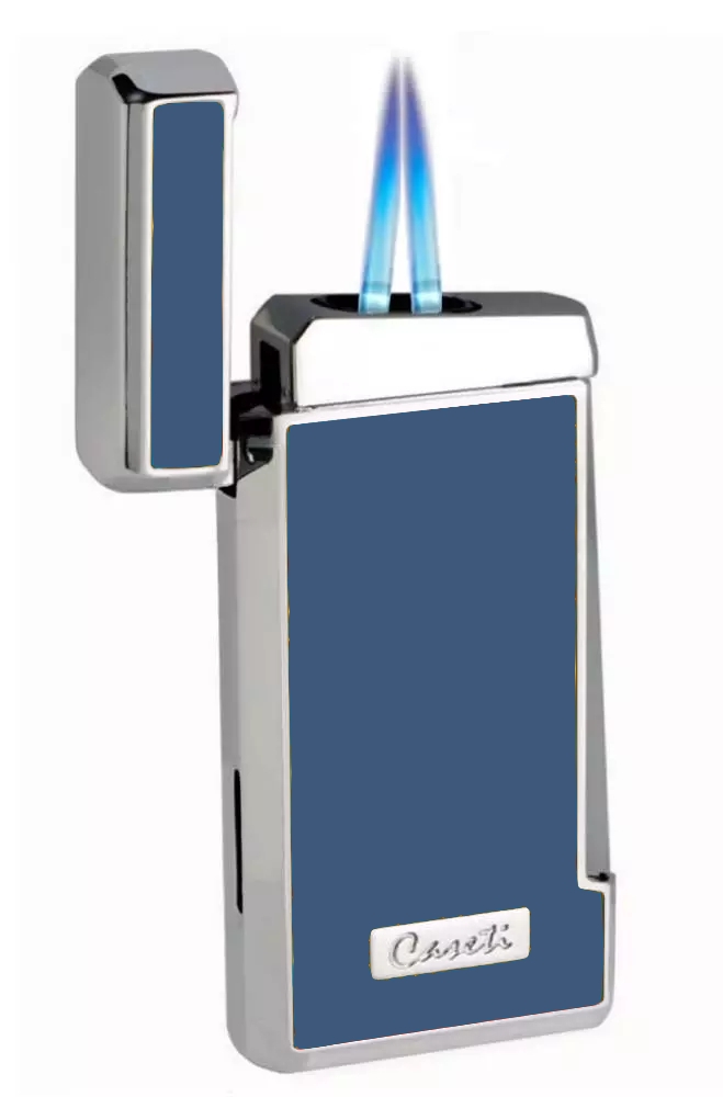 Caseti Paris Feuerzeug graublau chrom mit 2-fach Jet-Flamme