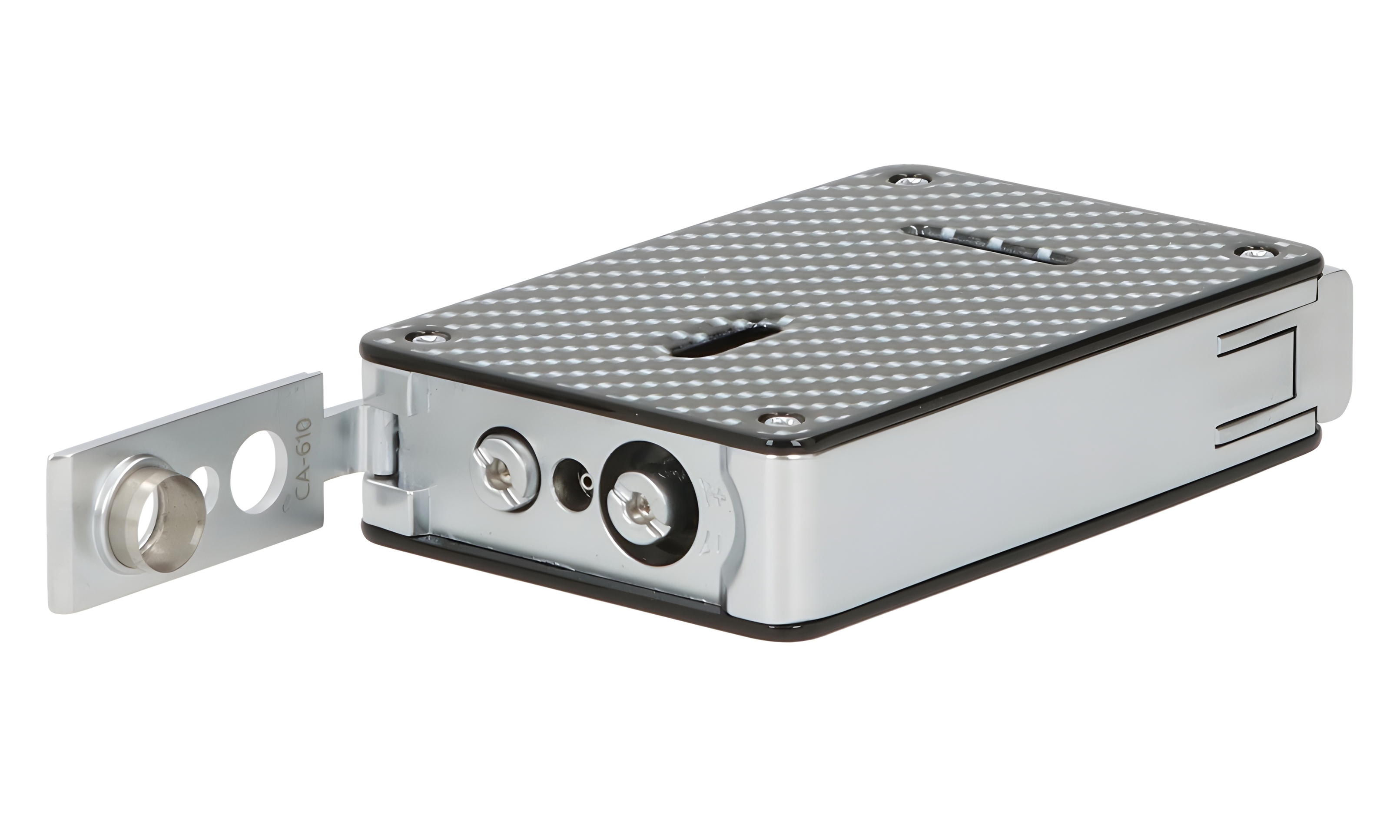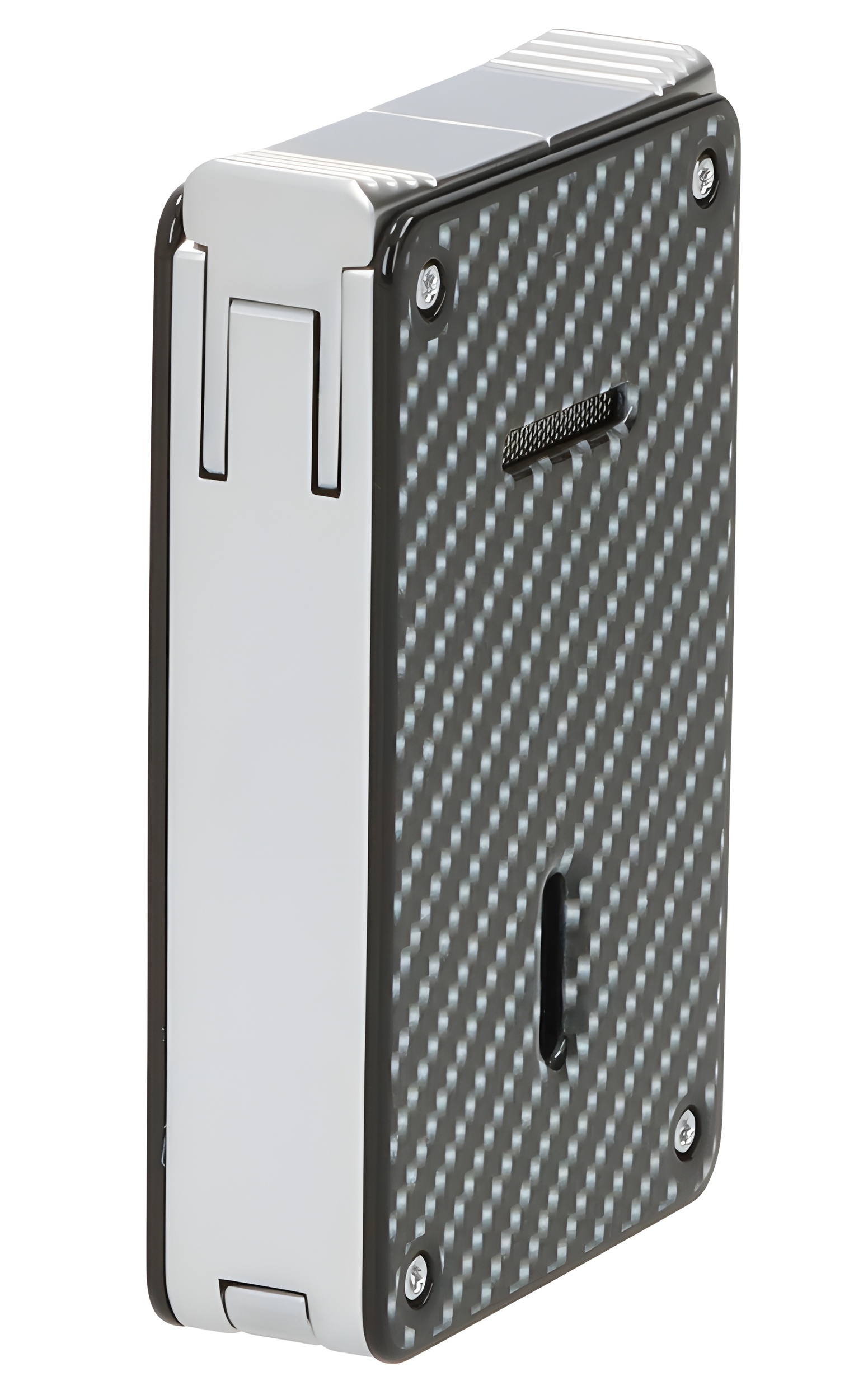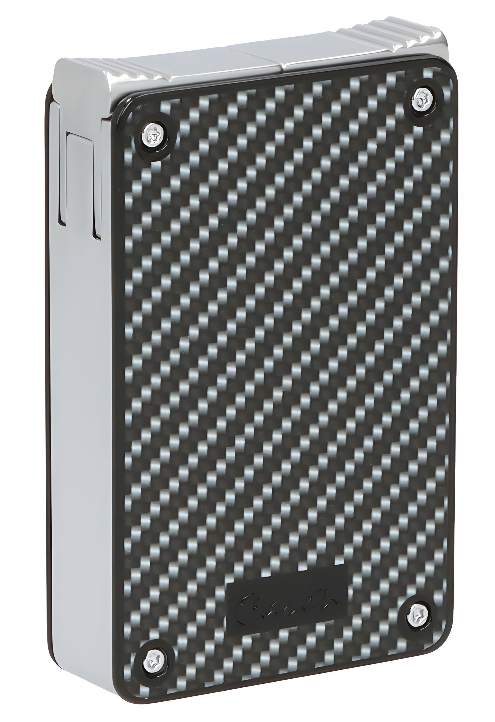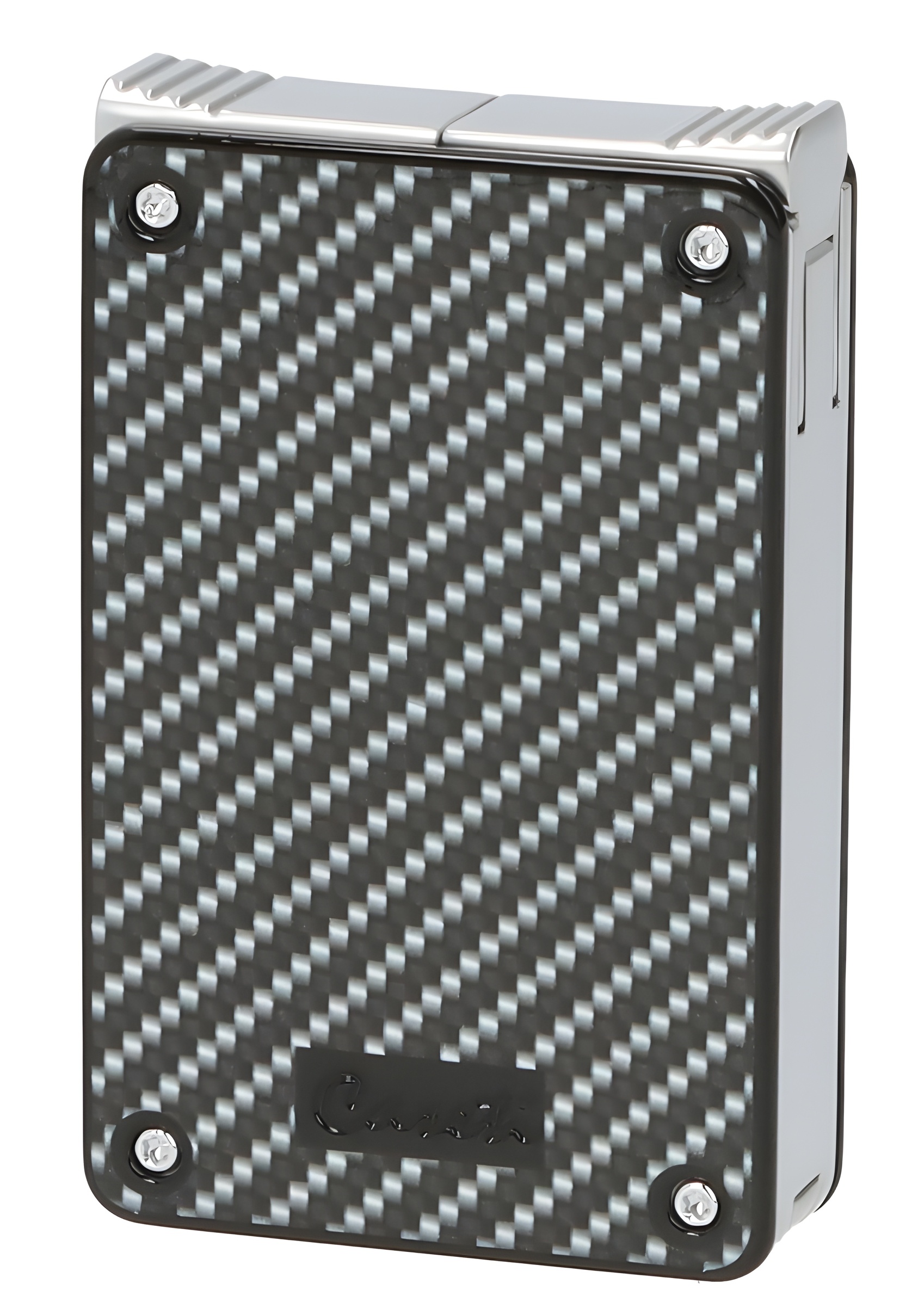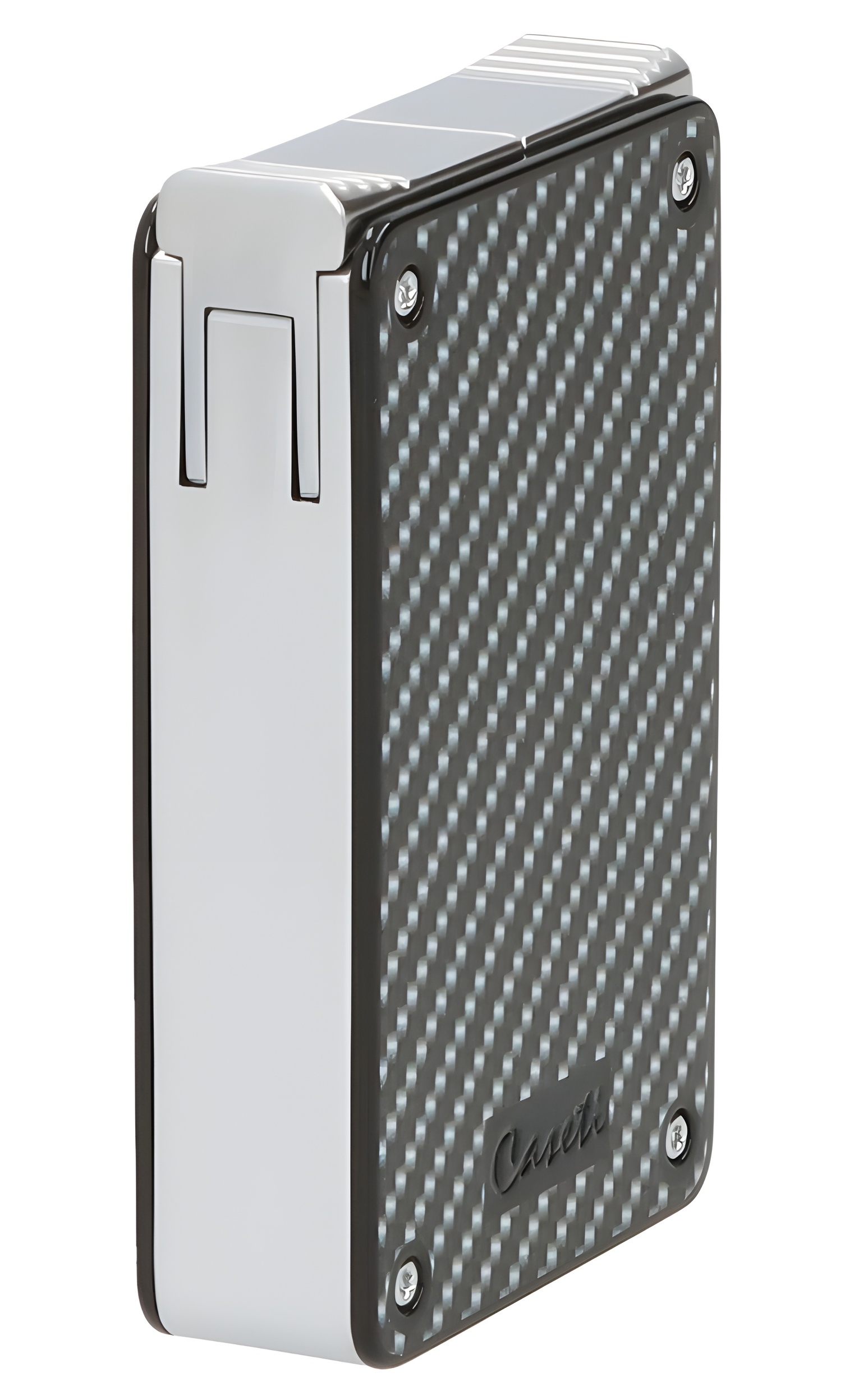 Caseti Paris Duo-Feuerzeug Carbon-Optik chrom vorne seitlich - © raucher-xxl.de