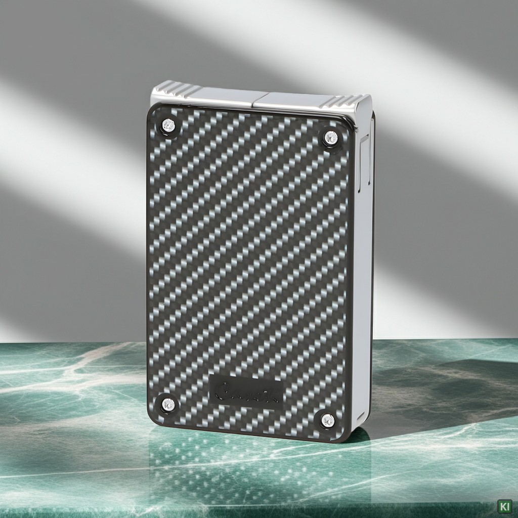 Caseti Paris Feuerzeug Carbon-Optik chrom mit Soft-Jet-Flamme und 2-fach Jet-Flamme