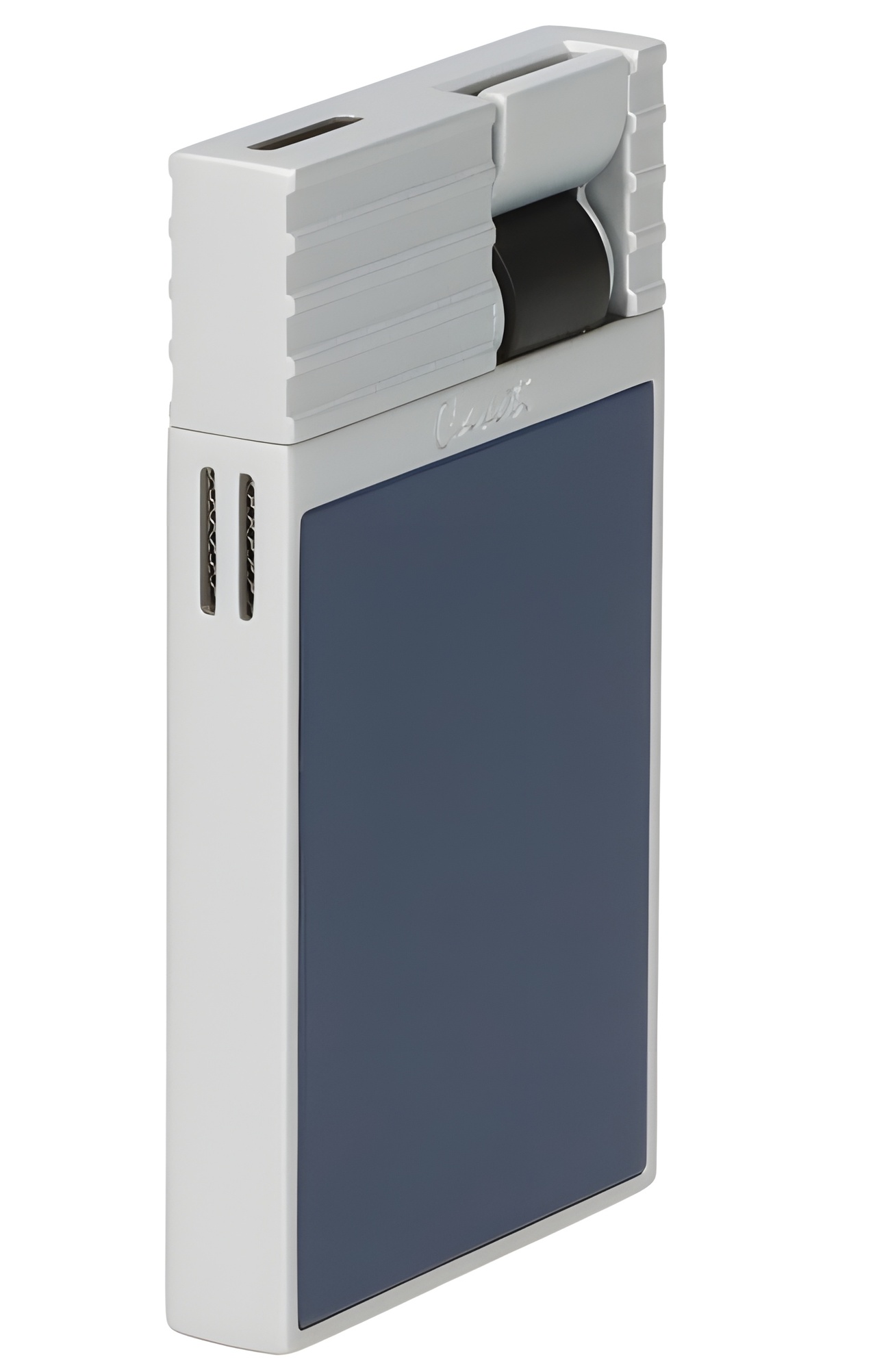 Caseti Paris Flat dunkelblau matt / silbern Feuerzeug mit Piezozündung und 1-fach Flat Jet-Flamme