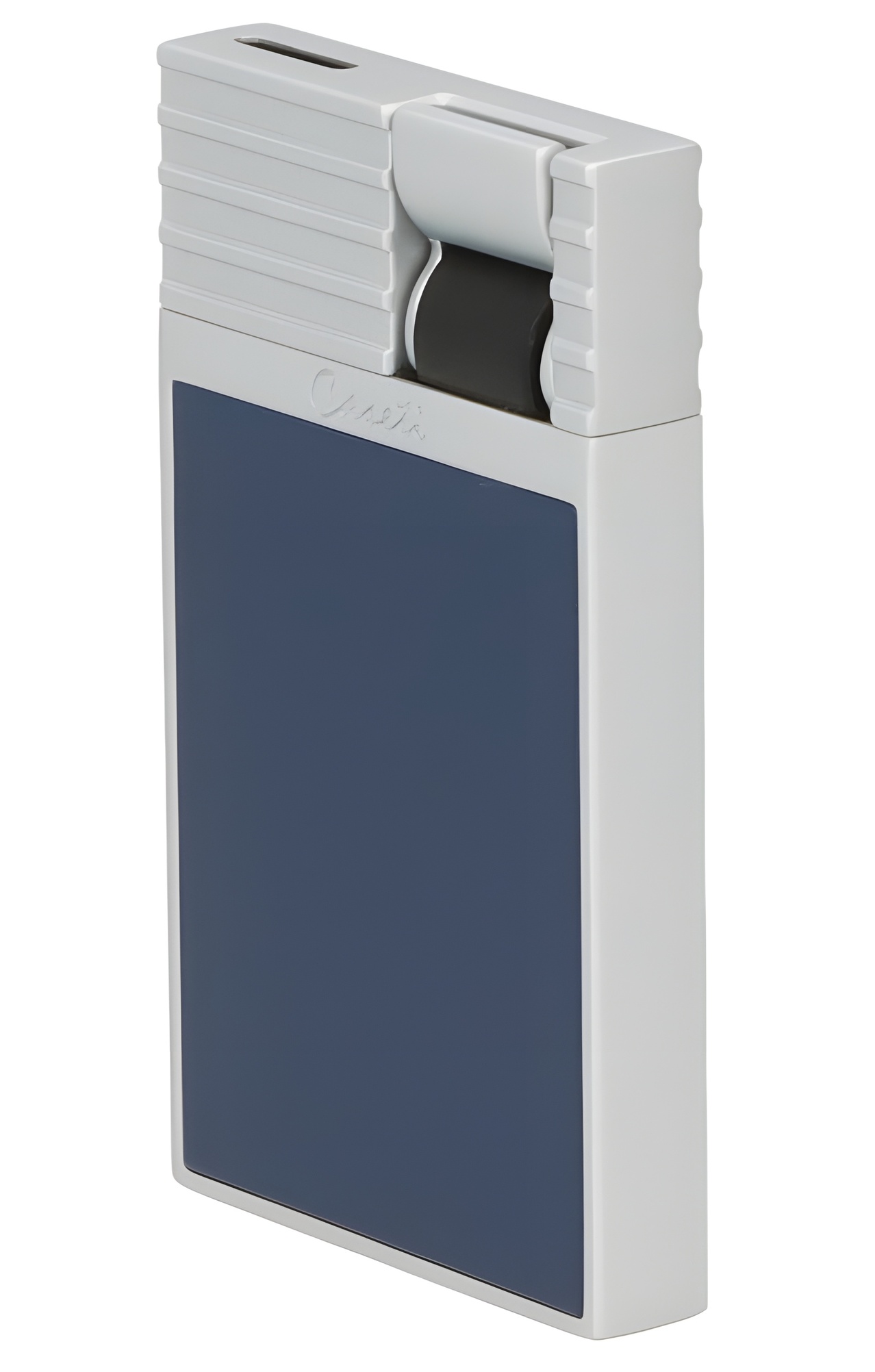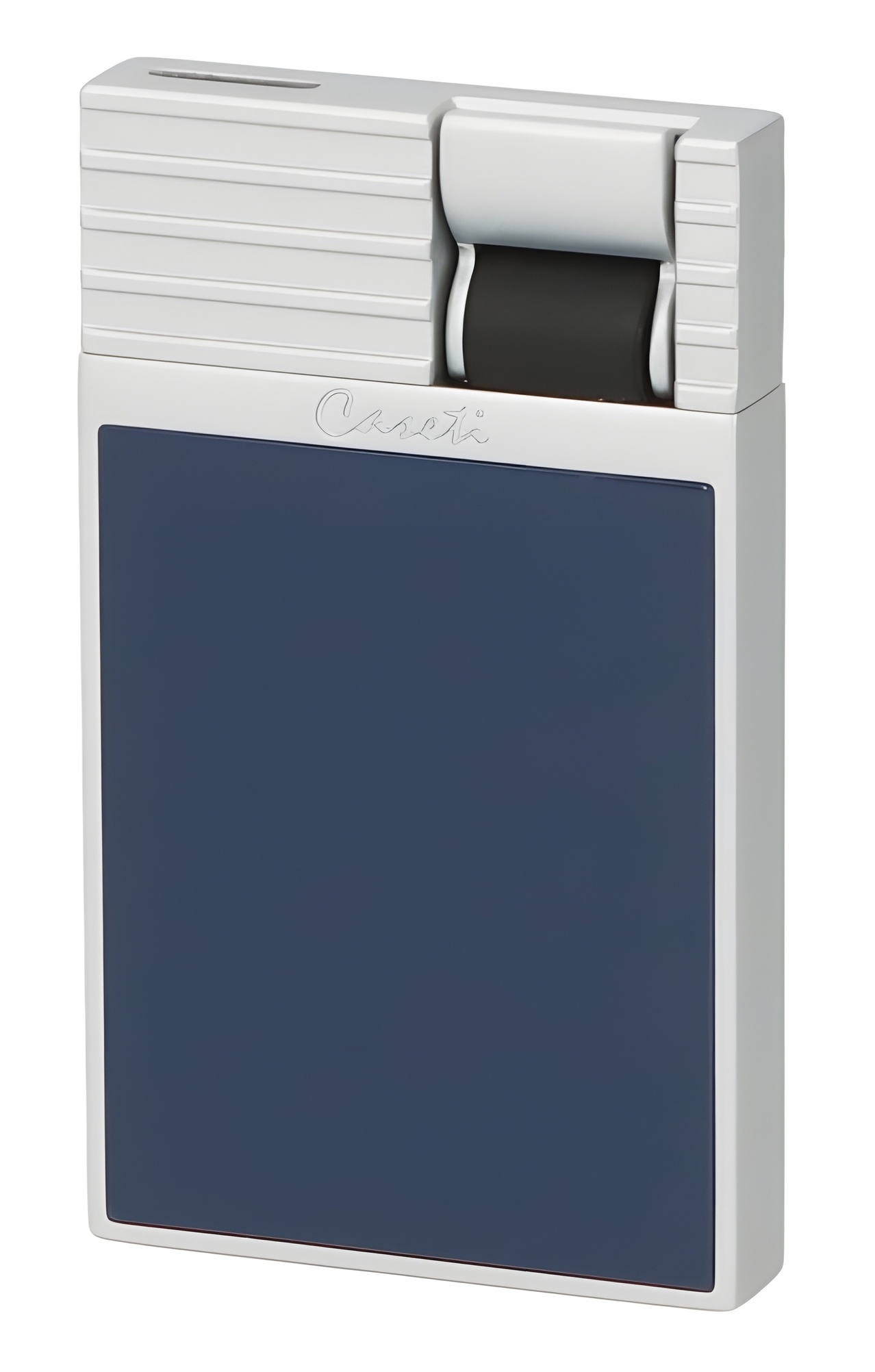 Caseti Paris dunkelblau matt silbern glatt Feuerzeug mit Flat Jet-Flamme