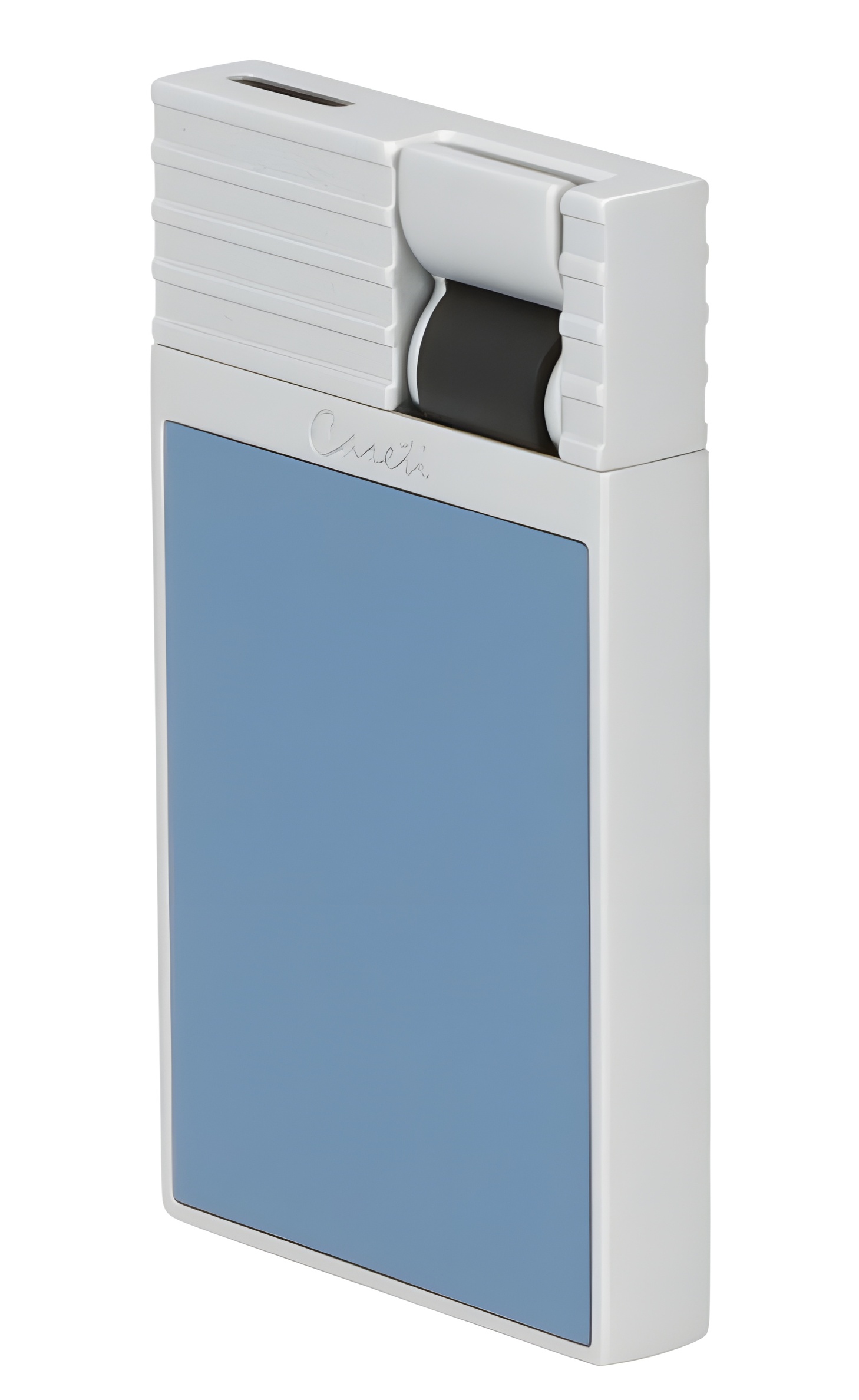 Caseti Paris graublau matt silbern glatt Feuerzeug mit Flat Jet-Flamme