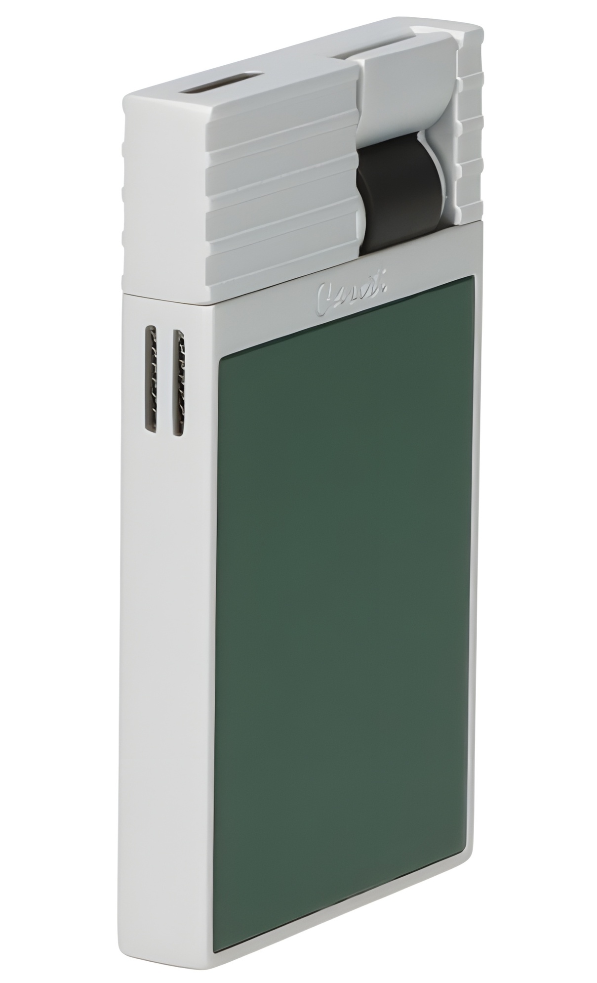 Caseti Paris Flat grün matt / silbern Feuerzeug mit Piezozündung und 1-fach Flat Jet-Flamme
