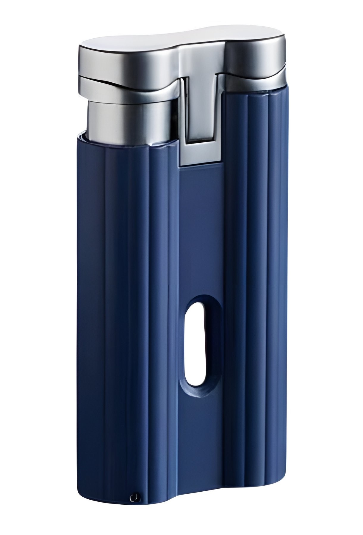 Caseti Paris dunkelblau matt / chrom Feuerzeug CA-579 mit Piezozündung, Zigarrenbohrer und 1-fach Jet-Flamme