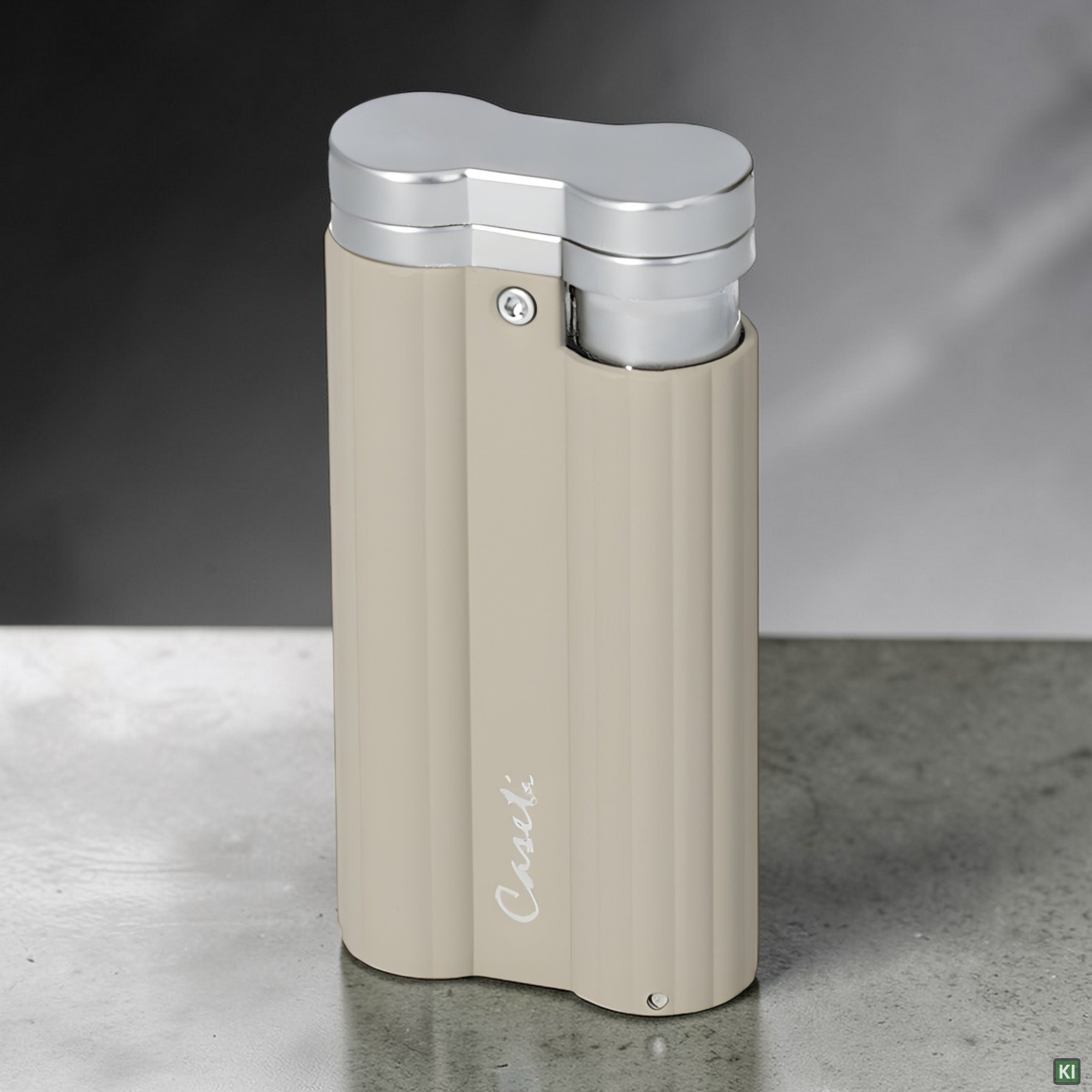 Caseti Paris grau-beige matt / chrom Feuerzeug CA-579 mit Piezozündung, Zigarrenbohrer und 1-fach Jet-Flamme