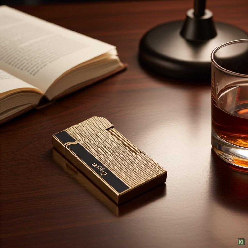Caseti Paris Feuerzeug Rom schwarz gold Caree auf Schreibtisch - © raucher-xxl.de