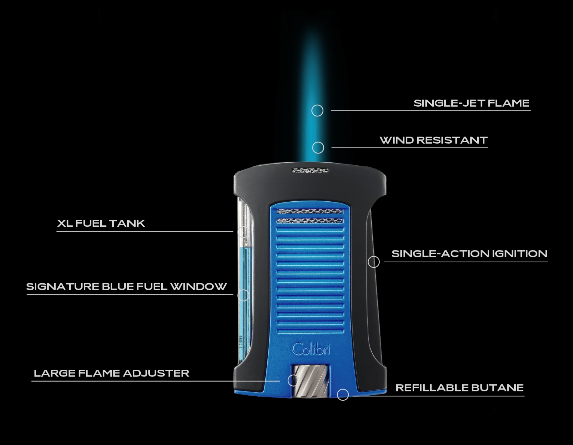 Die Colibri Feuerzeuge der Serie Daytona II sind von aufregenden und präzisen Actionen des Autorennens inspiriert. Das Daytona II ist der verbesserte Nachfolger des beliebten Erfolgsmodell Daytona und macht da weiter, wo sein Vorgänger aufgehört hat. Daytona Feuerzeuge wurden nach dem neuesten Stand der Technik gebaut und besitzt eine robuste Single-Jet-Flamme, die sich oben in der Mitte befindet. Die Flamme wird durch den auf der rechten Seite befindlichen großen Druckauslöser betätigt und vom Gas des auf der linken Seite befindlichen großen Gastank befeuert. Um häufige Boxenstopps zu vermeiden, wurde die Gastankkapazität um 50% gegenüber den durchschnittlichen Einstrahlfeuerzeugen erhöht. Der Tank ist blau reflektiert, um eine schnelle Anzeige des "Kraftstoffstandes" zu ermöglichen. Um die Flamme mit viel Sauerstoff zu versorgen, befinden sich auf der Vorder- und Rückseite des Körpers sechs Lufteinlassöffnungen, die die die Flamme mit viel Sauerstoff versorgen. Mit dem großen Flammeneinstellrad am Boden ist die Höheneinstelleung der Flamme mühelos einzustellen.Das Colibri Markenfeuerzeug wird in der originalen Geschenkverpackung und mit den originalen Papieren von Colibri geliefert.