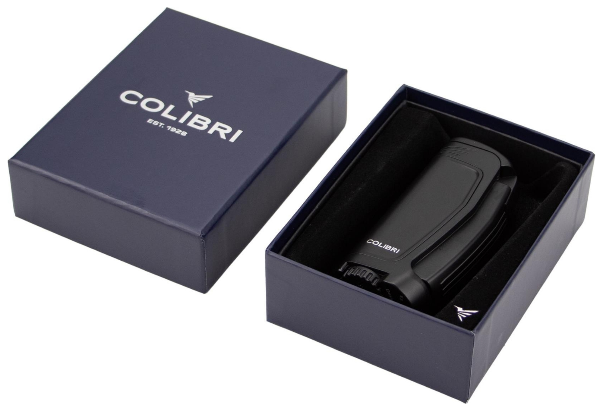Colibri E3 schwarz mit 3-fach Jet-Flamme offen - © raucher-xxl.de