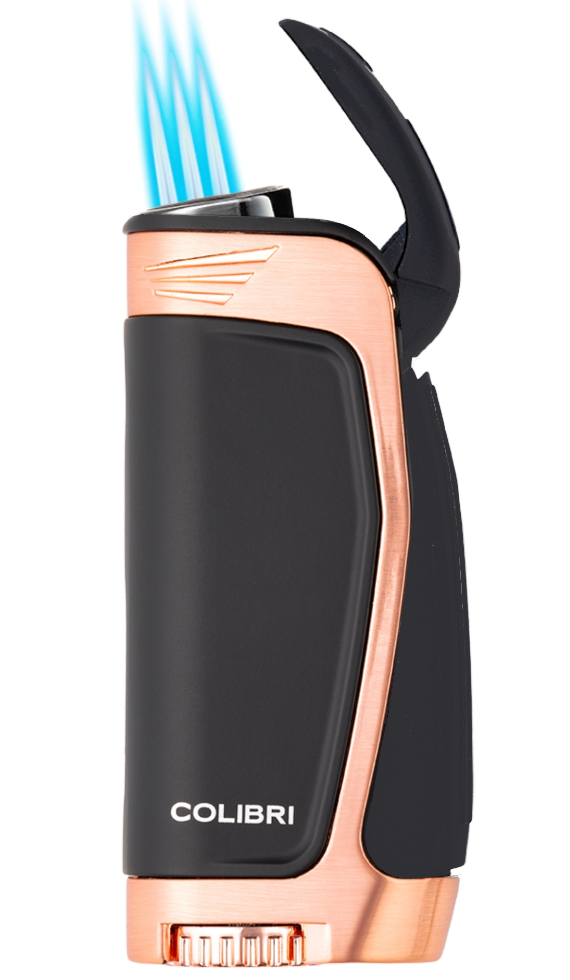 Colibri E3 schwarz rosegold mit 3-fach Jet-Flamme offen - © raucher-xxl.de