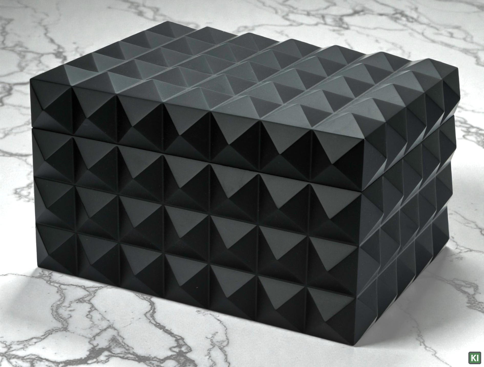 Der schwarze Colibri-Humidor verleiht seiner Umgebung durch sein einzigartiges, dreidimensionales Pyramiden-Kacheldesign einen futuristischen Touch. Der Humidor fasst auf 2 Ebenen bis zu 175 Zigarren, die dank der zwei flexiblen Trennleisten beliebig unterteilt werden können. Das Befeuchtungssystem besteht aus einem Humidifer (Polymerbefeuchter) und einem Digitalhygrometer. Beide sind magnetisch und können flexibel an der Innenseite des Deckels angebracht werden. Das obere Tablett kann herausgenommen werden und gibt somit die untere Ebene frei. Der Deckel schließt vollkommen luftdicht ab, so bleiben Ihre Zigarren perfekt verwahrt.