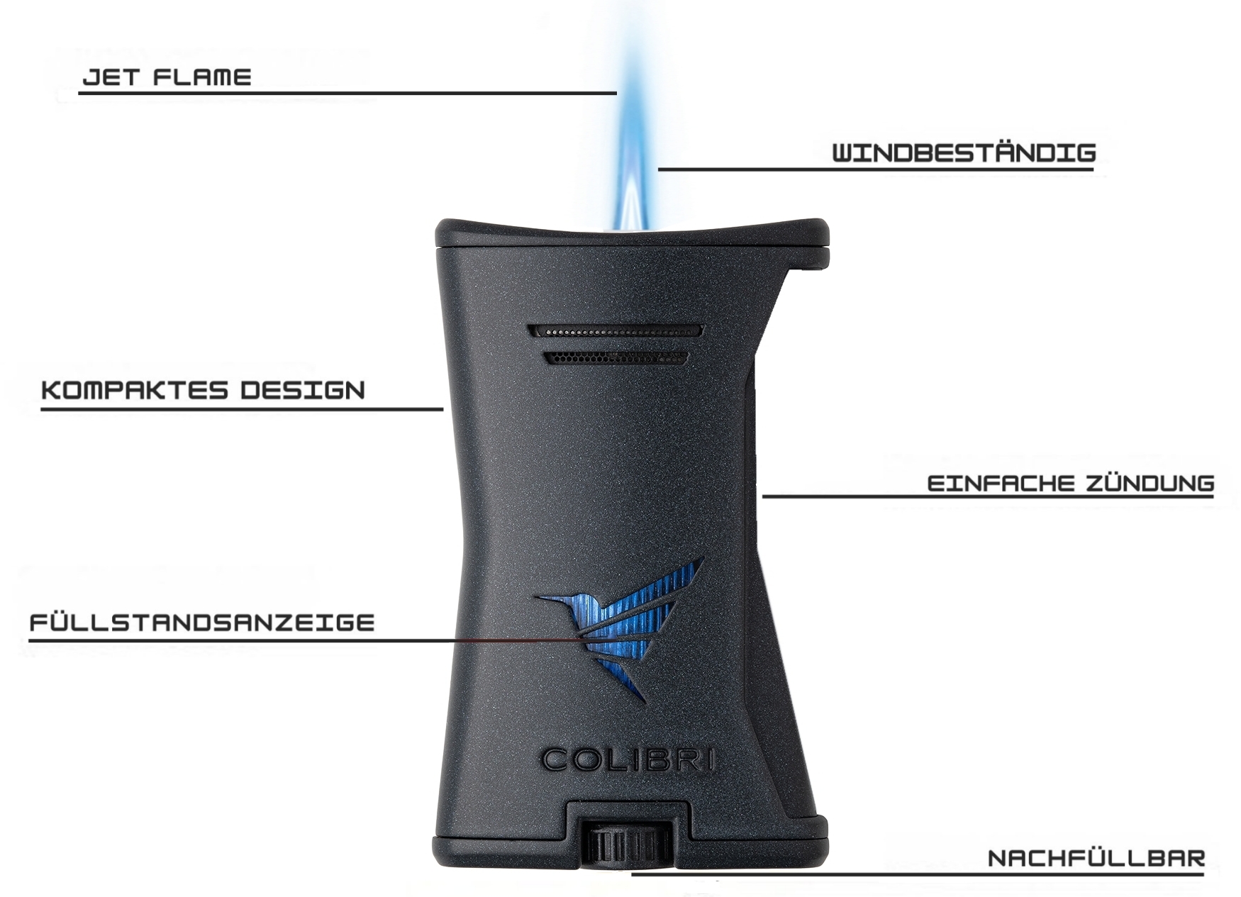Colibri Slim schwarz-chrom mit 1-fach Jet-Flamme an-aus - © raucher-xxl.de