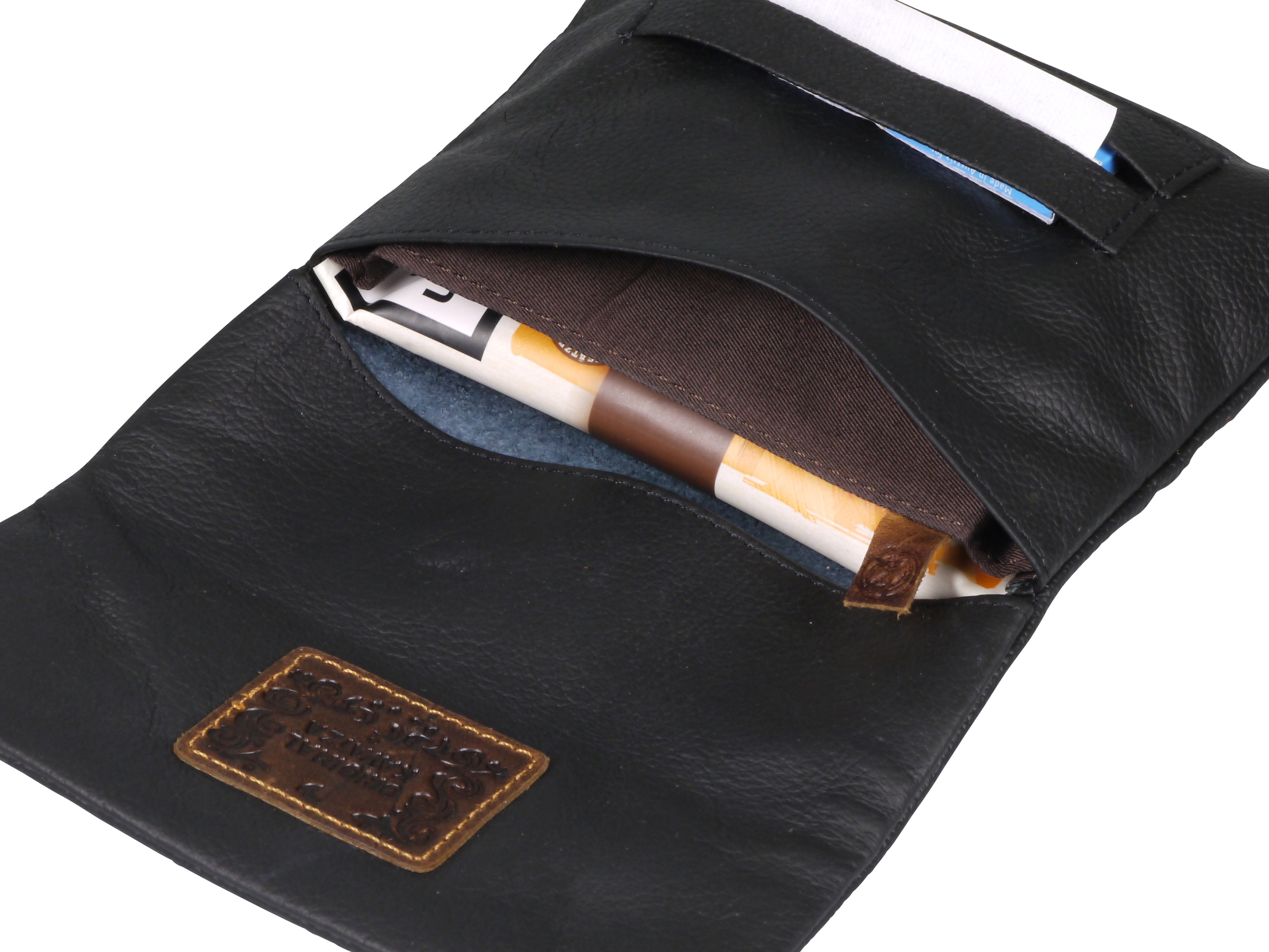 - Tabakbeutel, Filter und Feuerzeug werden bequem in zwei Innentaschen verstaut