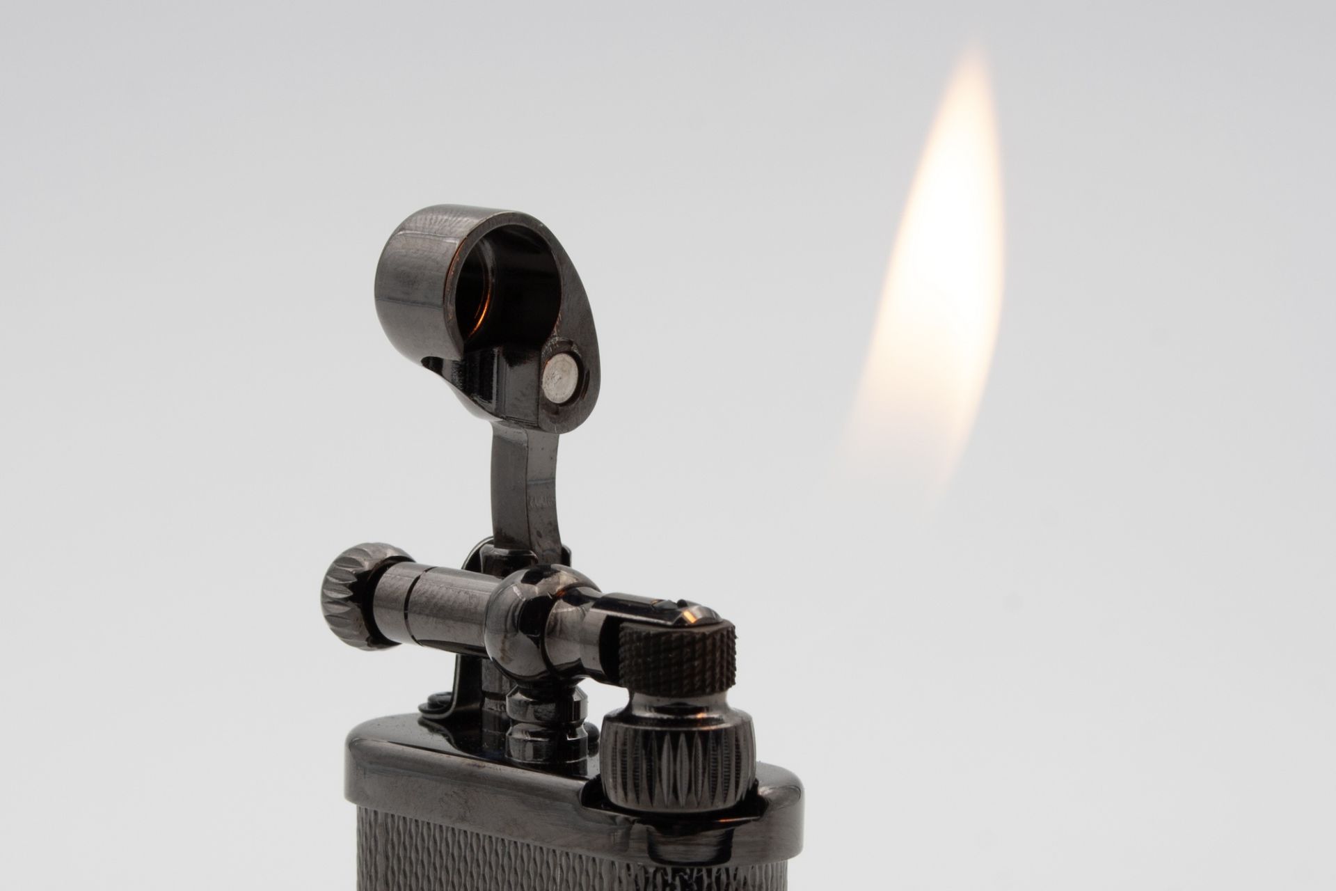 - Das Feuerzeug wird durch Drehen der seitlichen Antriebswalze gezündet.