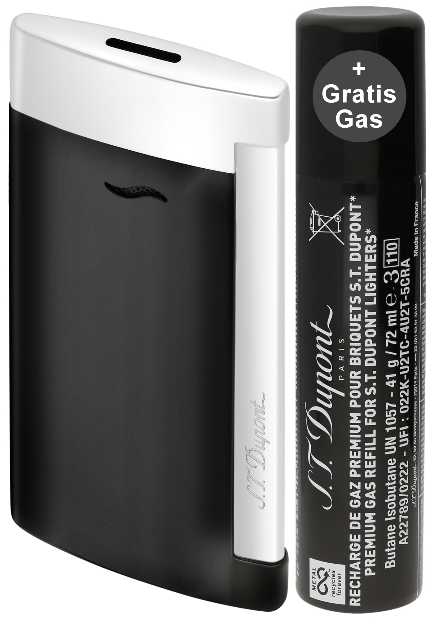 Das Feuerzeug wird mit einer passenden Dose S.T. Dupont Gas schwarz geliefert.S.T. DUPONT hat seine Luxus Feuerzeug Kollektion getreu seiner Tradition der Exzellenz und Innovationum um die neue Serie SLIM 7 erweitert.