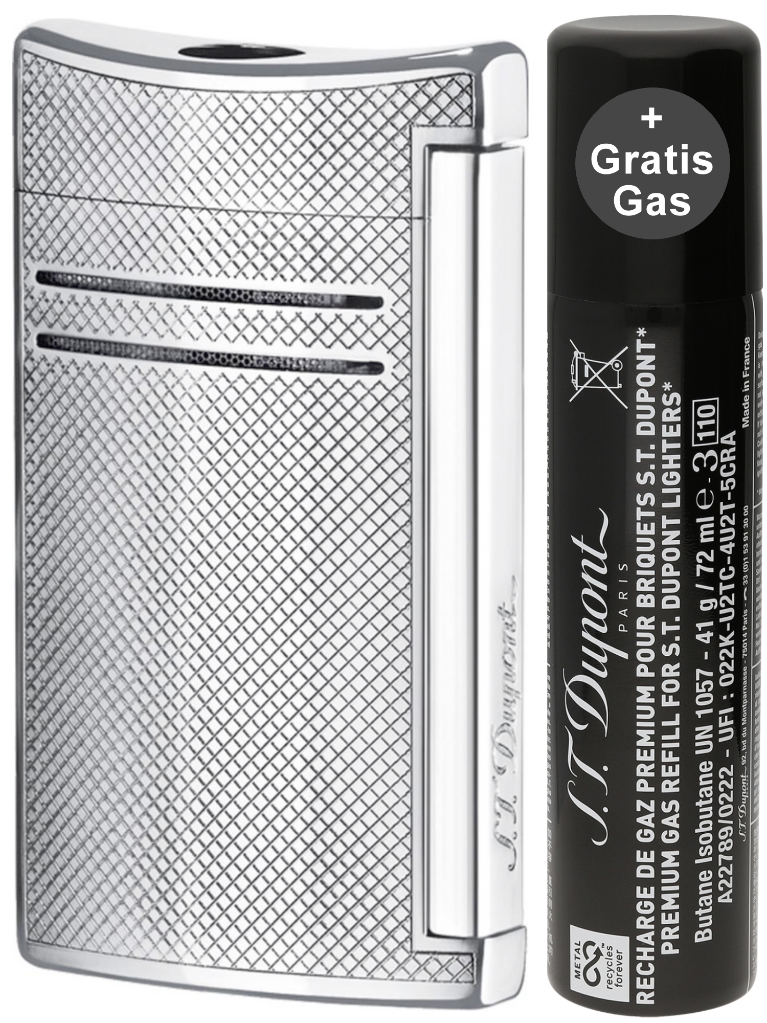 - Gratis-Zugabe: 1 x Dose Feuerzeuggas S.T. Dupont Dose 900430 (schwarz)
