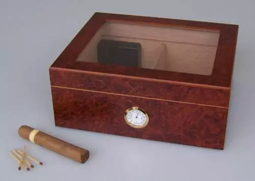 Angelo Humidor Wurzelholz-Optik mit Sichtfenster
