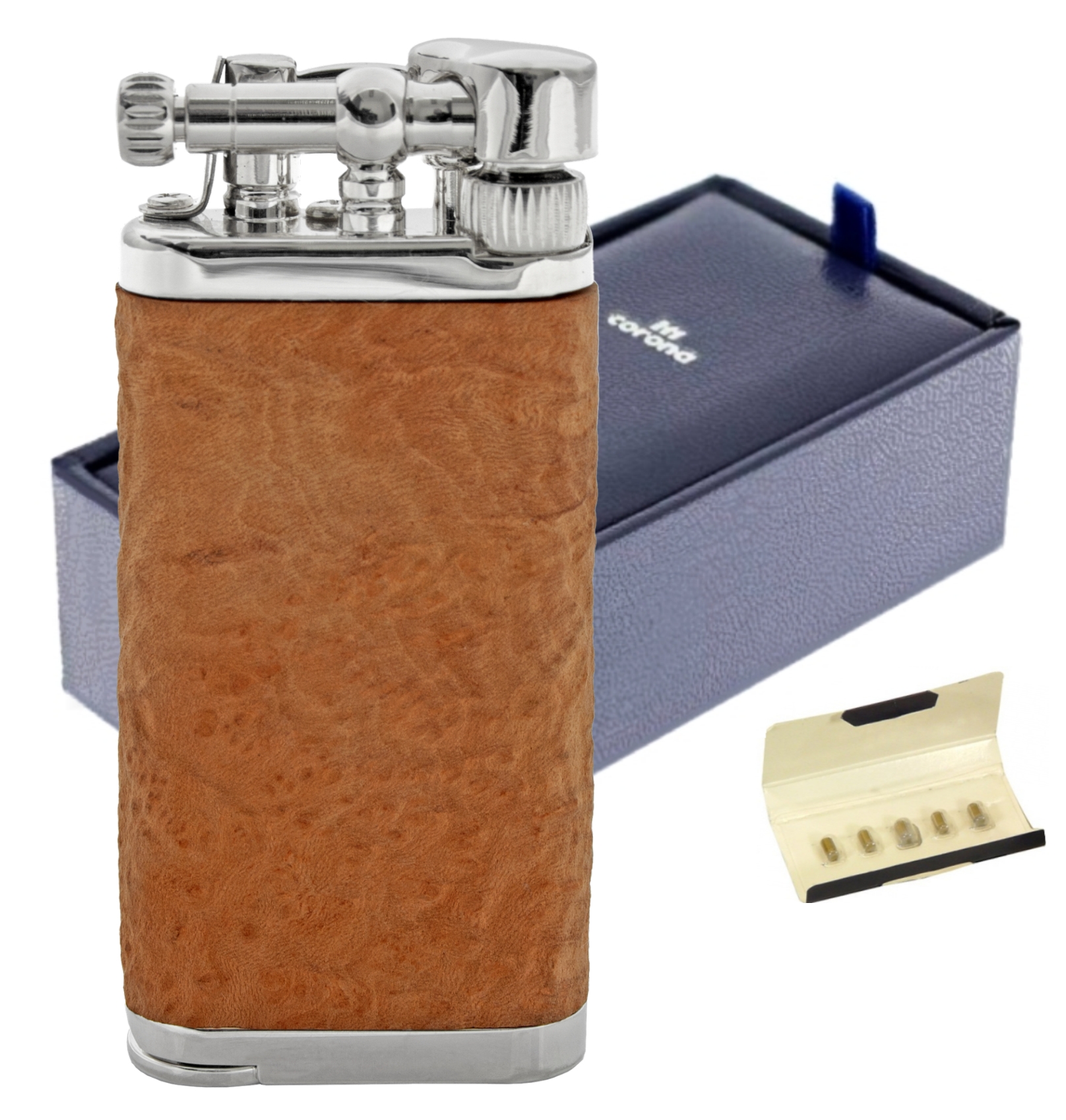 Bei uns bekommen Sie eine Packung original Ersatz-Feuersteine (5 Stück) kostenlos dazuDie legendären IM Corona Old Boy Pfeifenfeuerzeuge genießen unter Pfeifenrauchern Kultstatus.