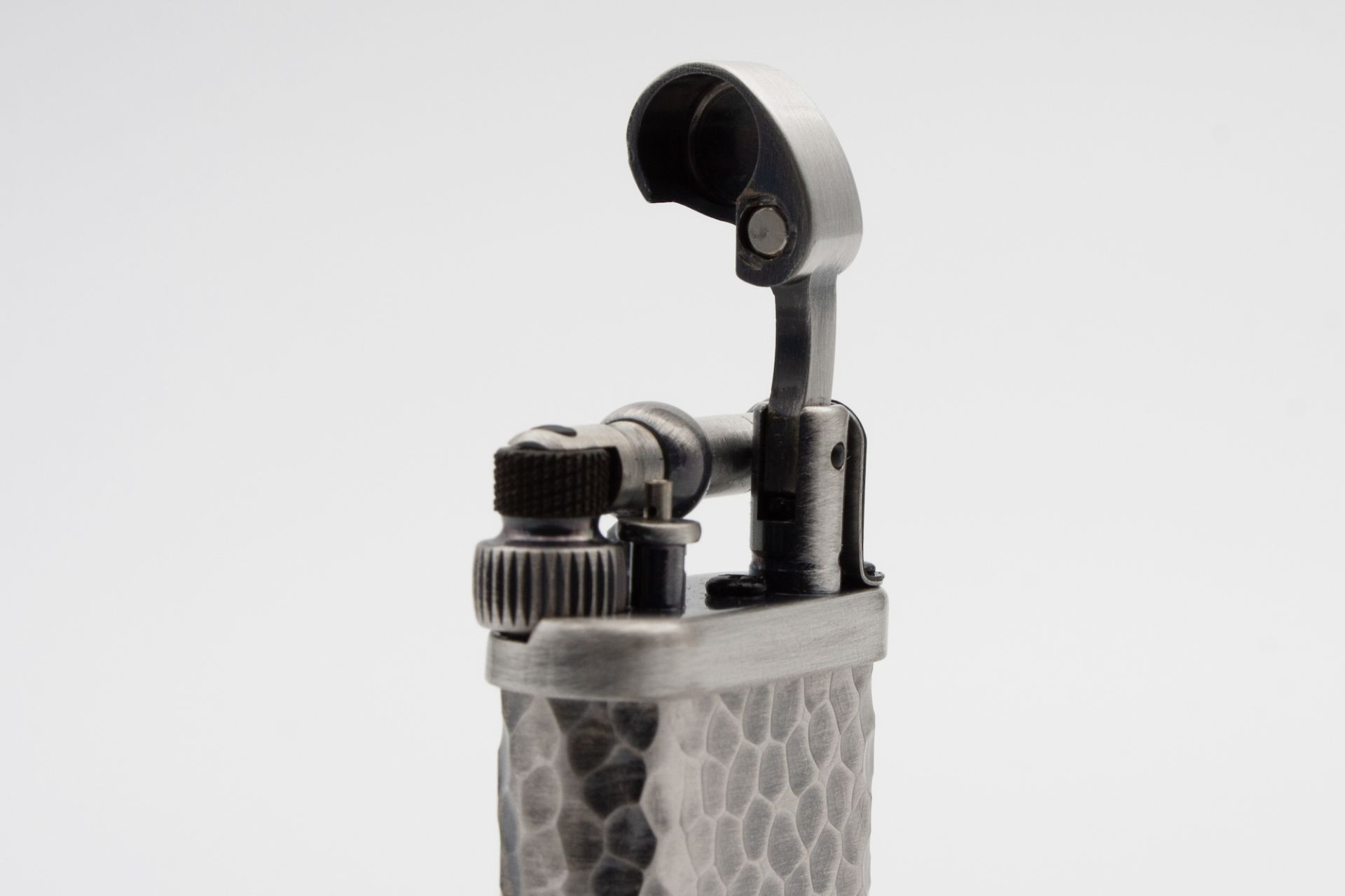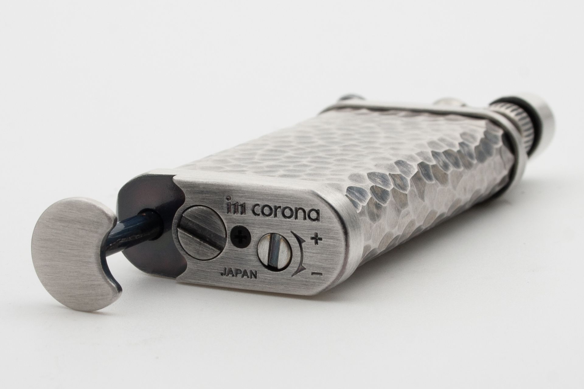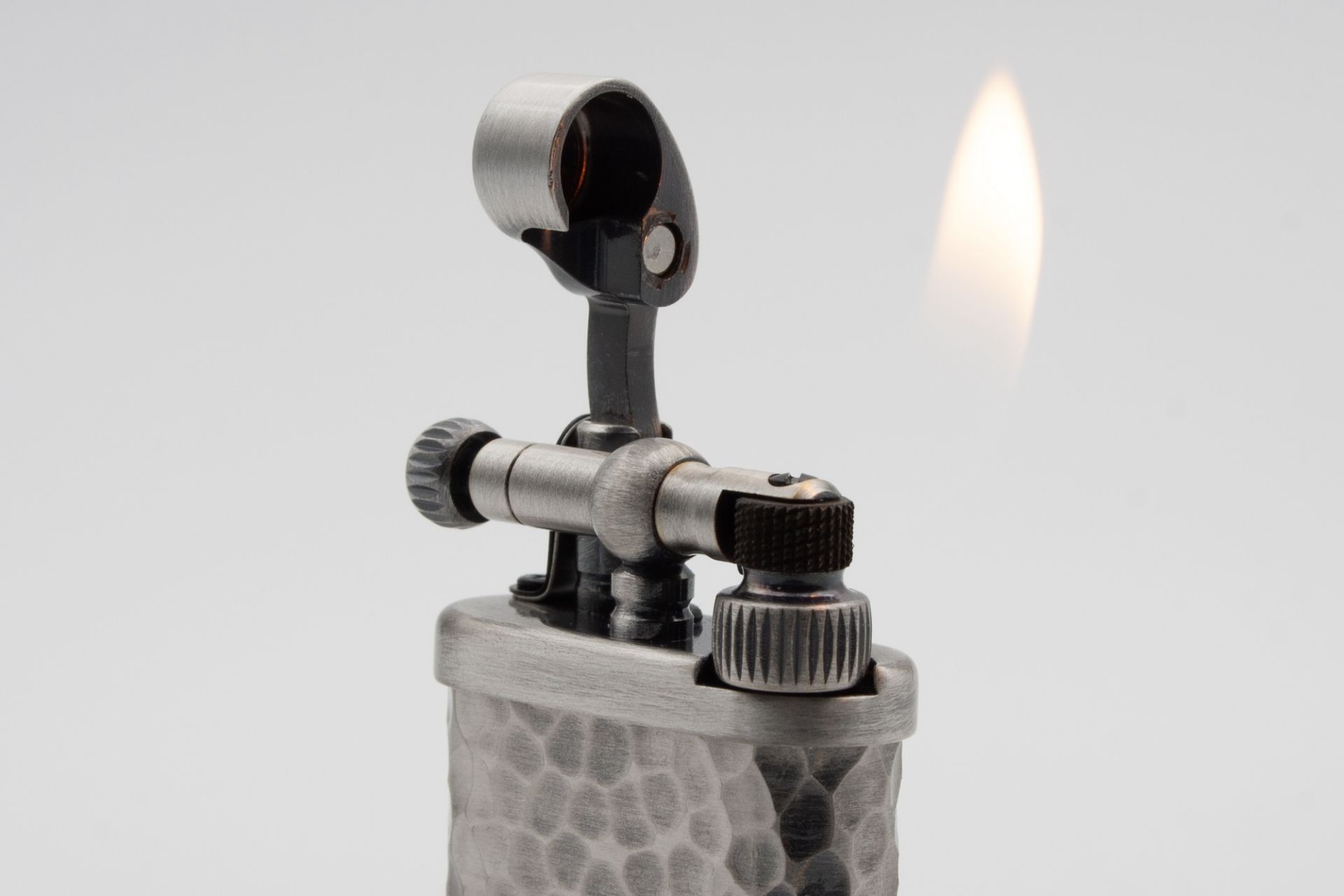 M Corona Old Boy Pfeifenfeuerzeug Zinn gehämmert 64-7717 offen - © raucher-xxl.de
