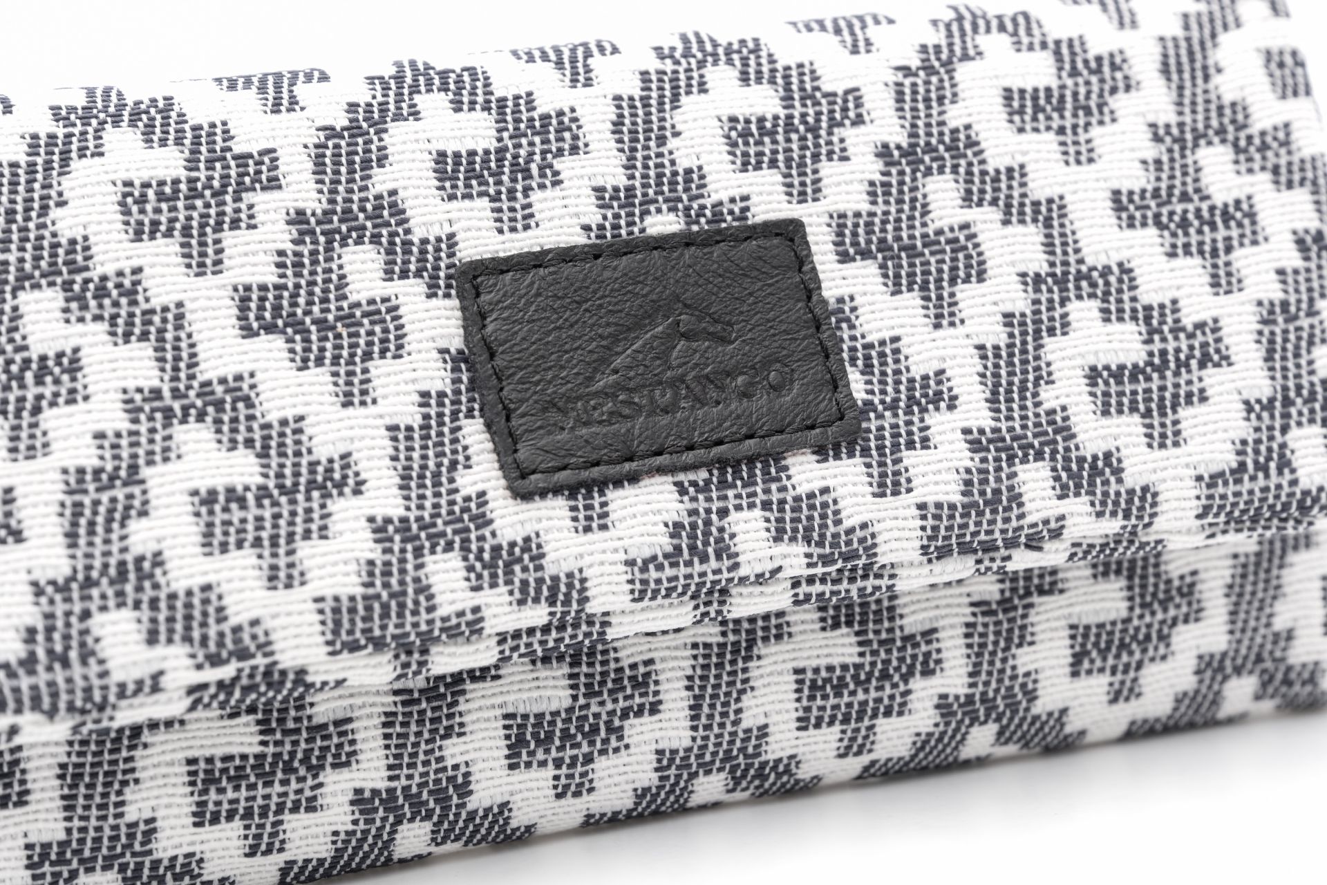 - Außen: strapazierfähiges Polyestergewebe mit grau weißem Boho-Muster