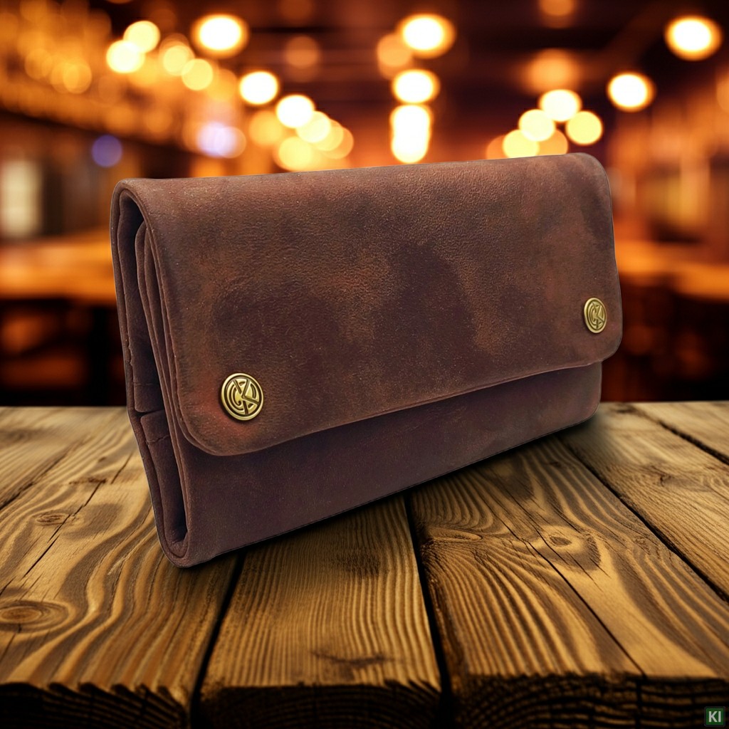 Kavatza Cowboy Deluxe TP11CR Nubik-Leder braun Tabaktasche Drehertasche Tabakbeutel