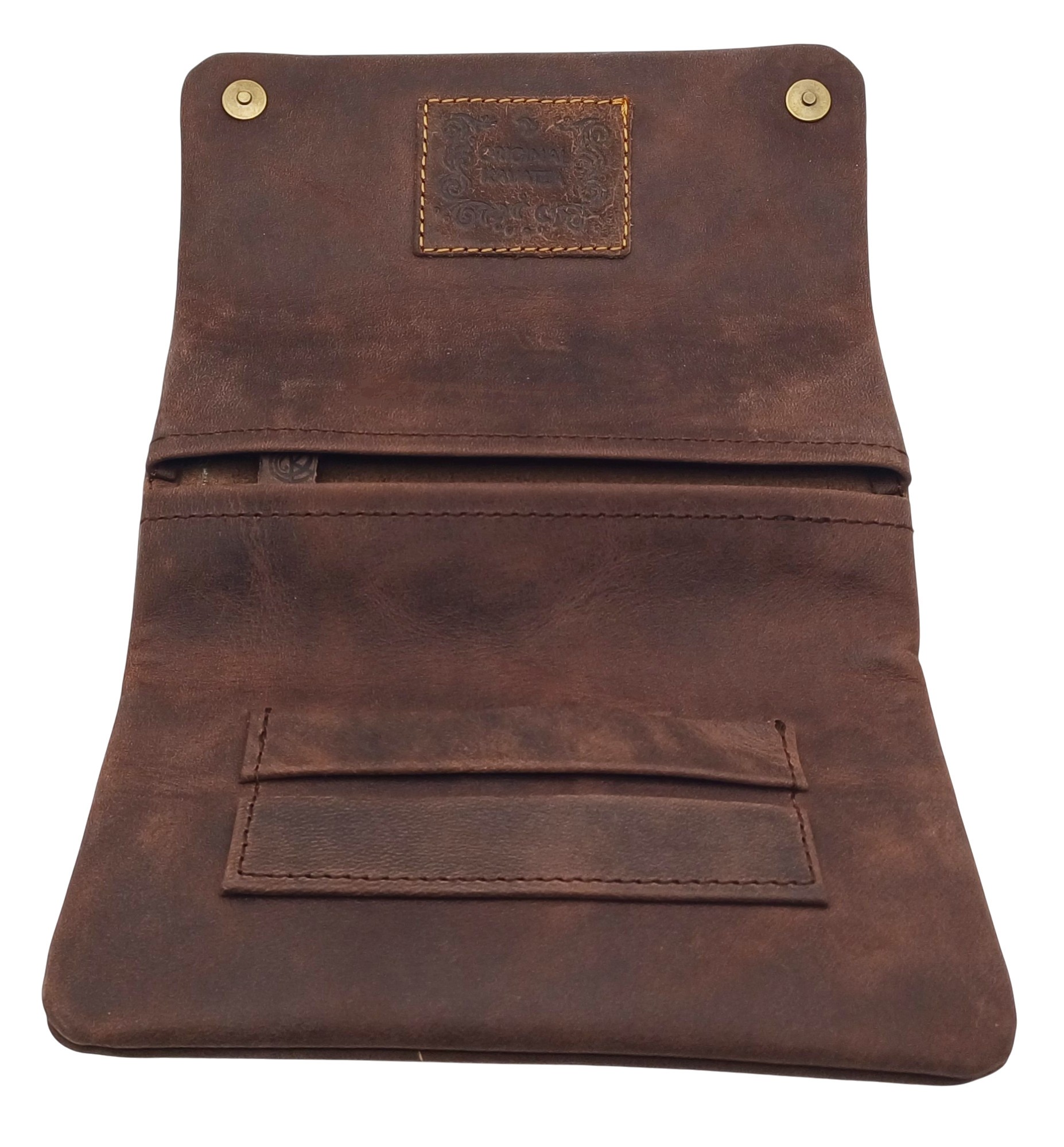Deluxe Tabaktasche in leicht aufgerauter, dunkelbraunem Rindsleder ist ein echter Klassiker unter den Drehertaschen.Die Deluxe Variante der Tabaktaschen zeichnen sich durch speziell ausgesuchtes, echtes Qualitätsleder aus. Alle Deluxe Qualitäts-Drehertaschen werden in einer feinen Manufaktur auf Kreta in Griechenland mit Hingabe und Liebe hergestellt. Das Leder wird dabei schonend hergestellt und verarbeitet.