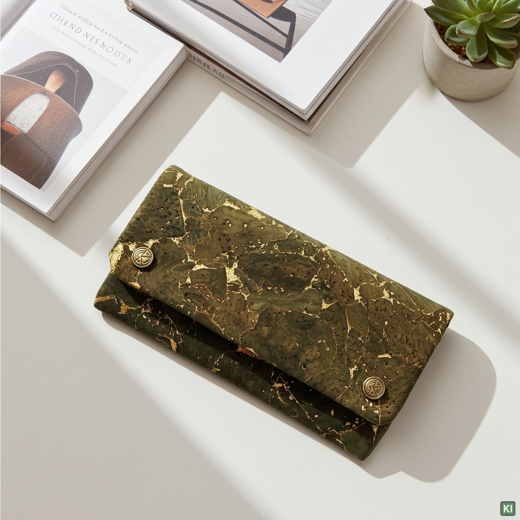 - Farbe: Olivfarbener Kork mit goldfarbenen Akzente