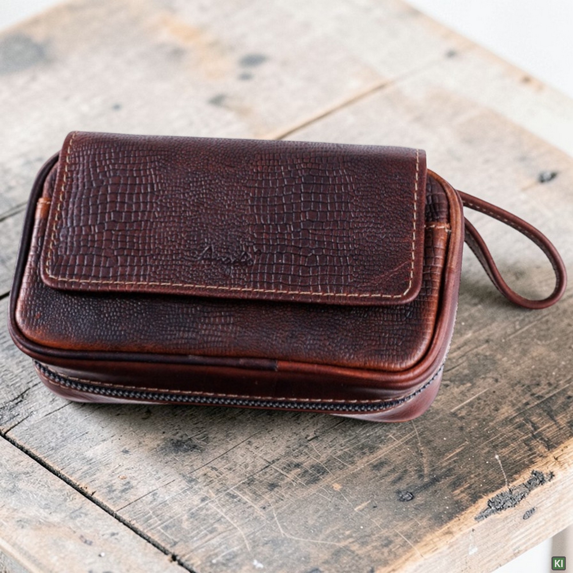 Angelo Pfeifentasche Rindsleder braun in Schlangenoptik Szene - © raucher-xxl.de