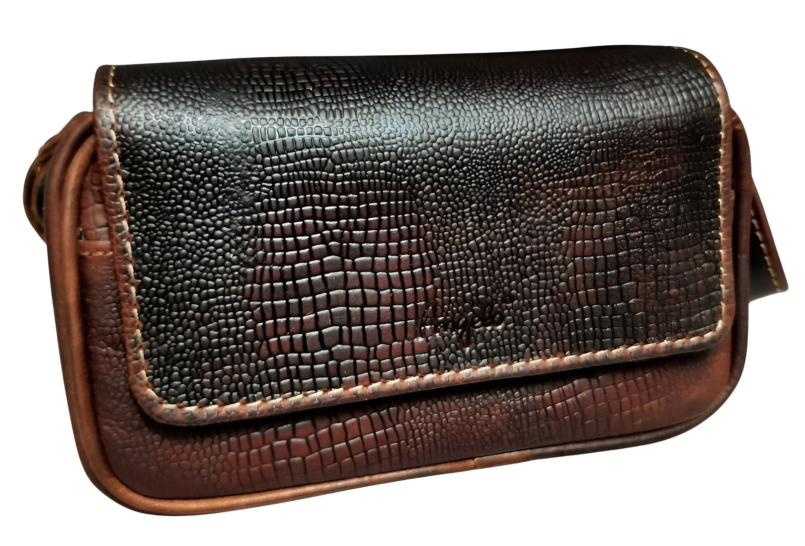 Angelo Pfeifentasche Rindsleder braun in Schlangenoptik vorne - © raucher-xxl.de