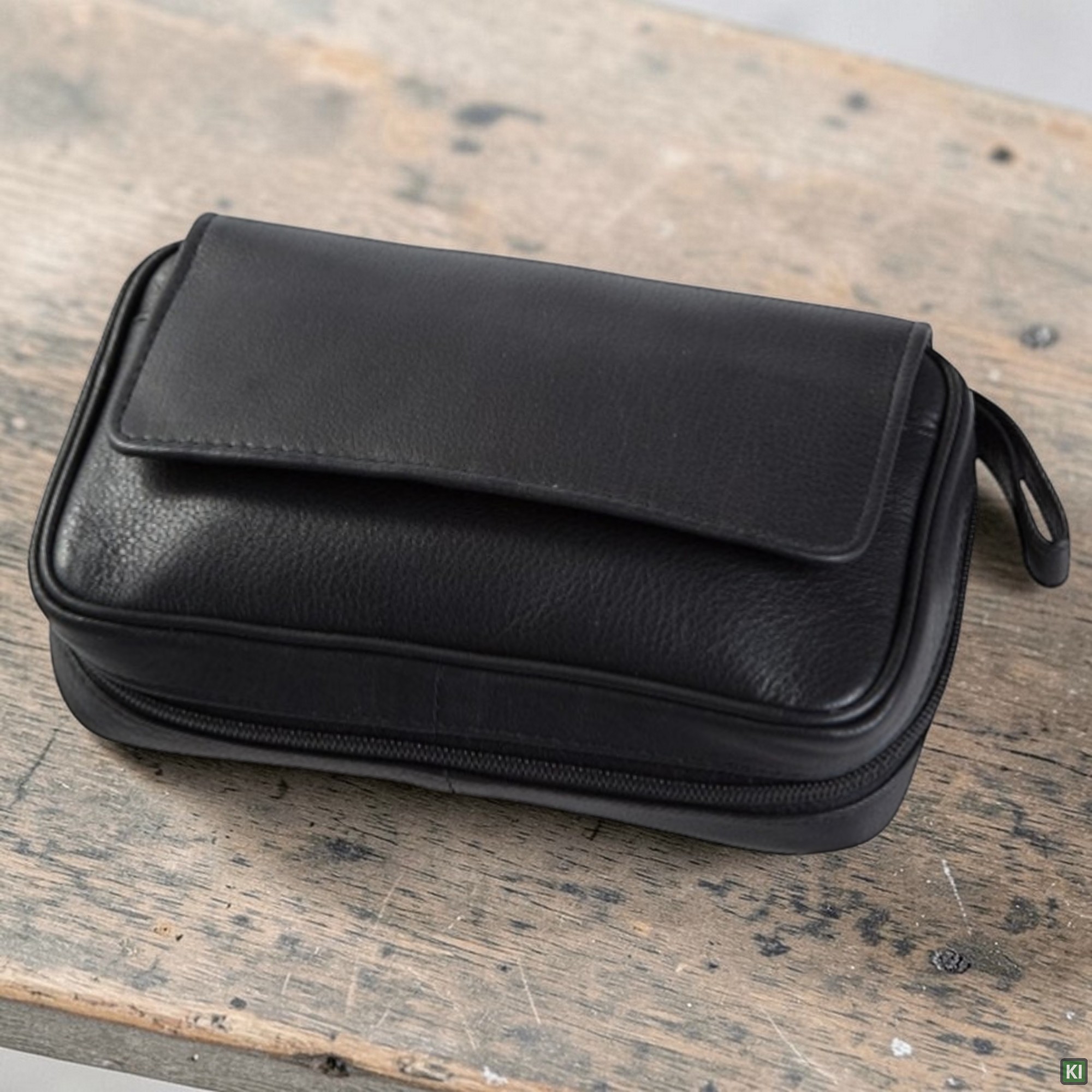 Angelo Pfeifentasche echtes Leder schwarz für 3 Pfeifen mit herausnehmbarem Tabakbeutel