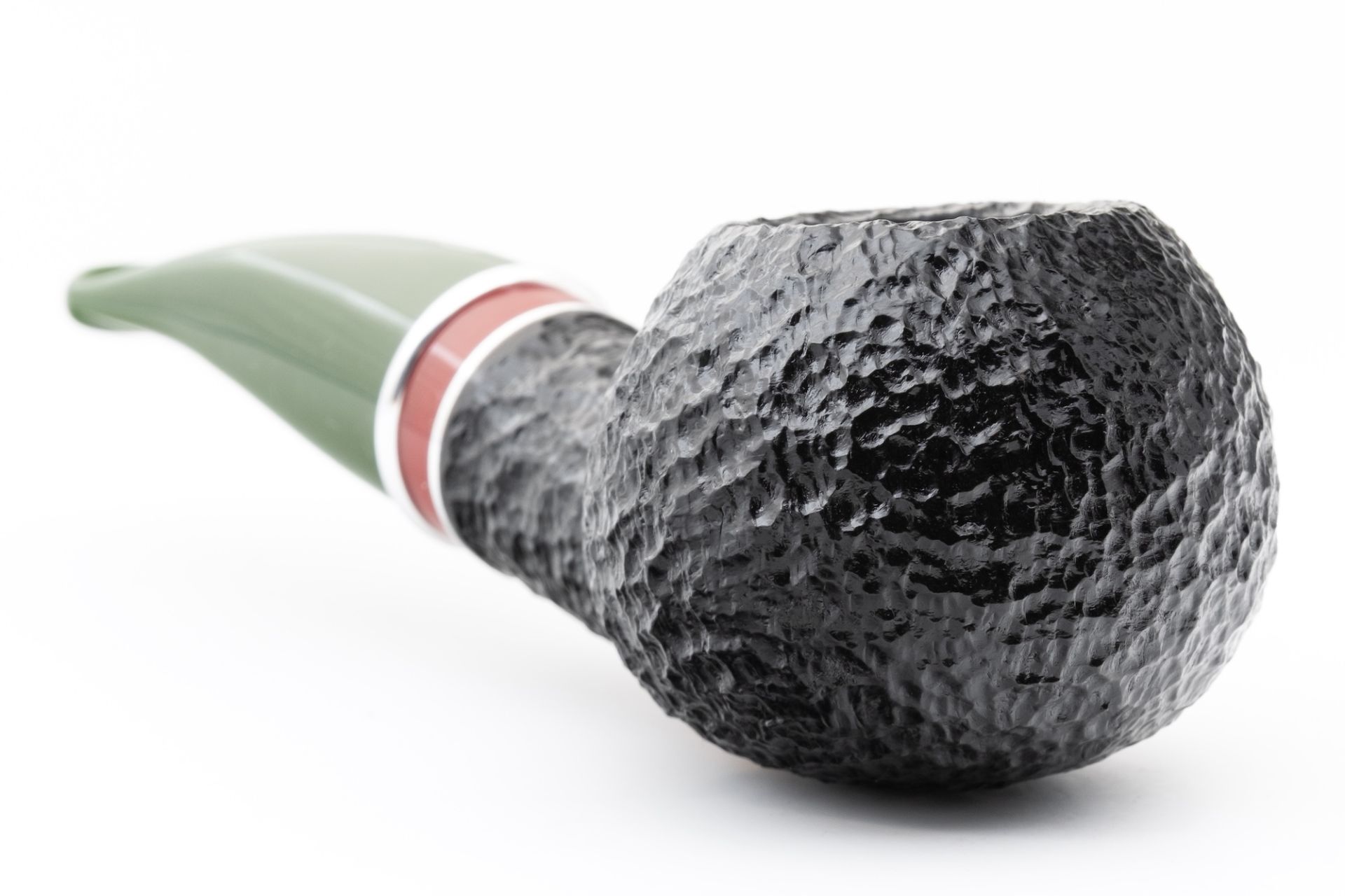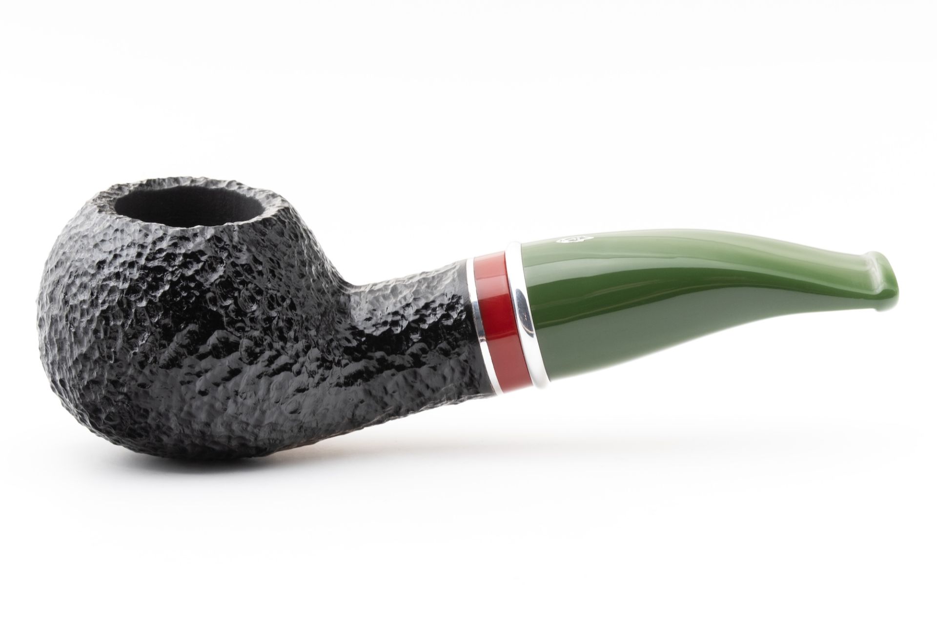 Savinelli St. Nicholas 2025 Rustic 320 schwarz rustiziert mit grünem Mundstück Half-Bent - Diplomat