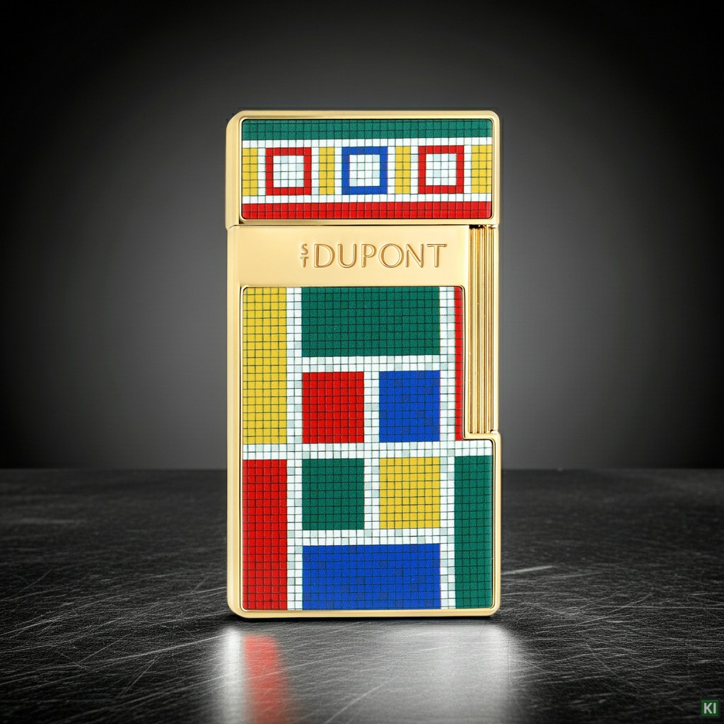 S.T. Dupont Biggy Casablanca Mosaik gold Feuerzeug im Raum - © raucher-xxl.de