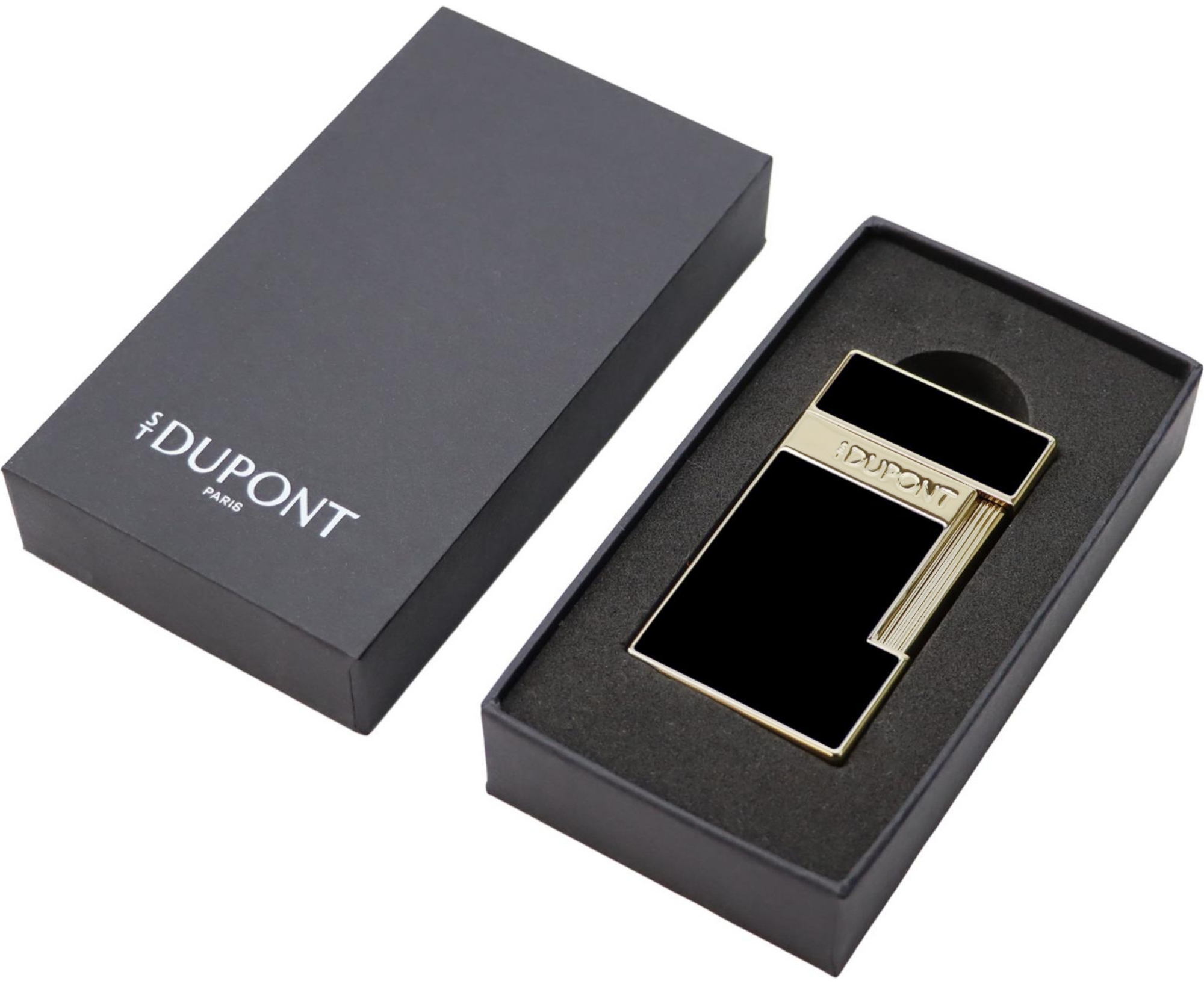 Das Feuerzeug wird mit einer passenden Dose S.T. Dupont Gas schwarz geliefert.Feuerzeug mit neuem S.T. Dupont Logo