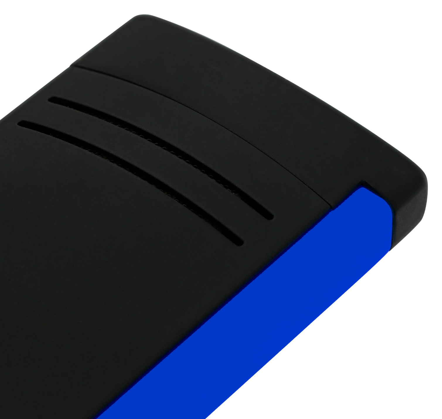 Das MaxiJet Feuerzeug-Modell Fluo besitzt eine matt-schwarzes Gehäuse mit einem Zündtaster in blau.S.T. DUPONT bringt nun kräftige Farben ins Spiel. Die Feuerzeuge der Serie MaxiJet Fluo sind mit mattschwarzem Gehäuse und mit einem Zündtaster in kräftigen Farben ausgestattet.