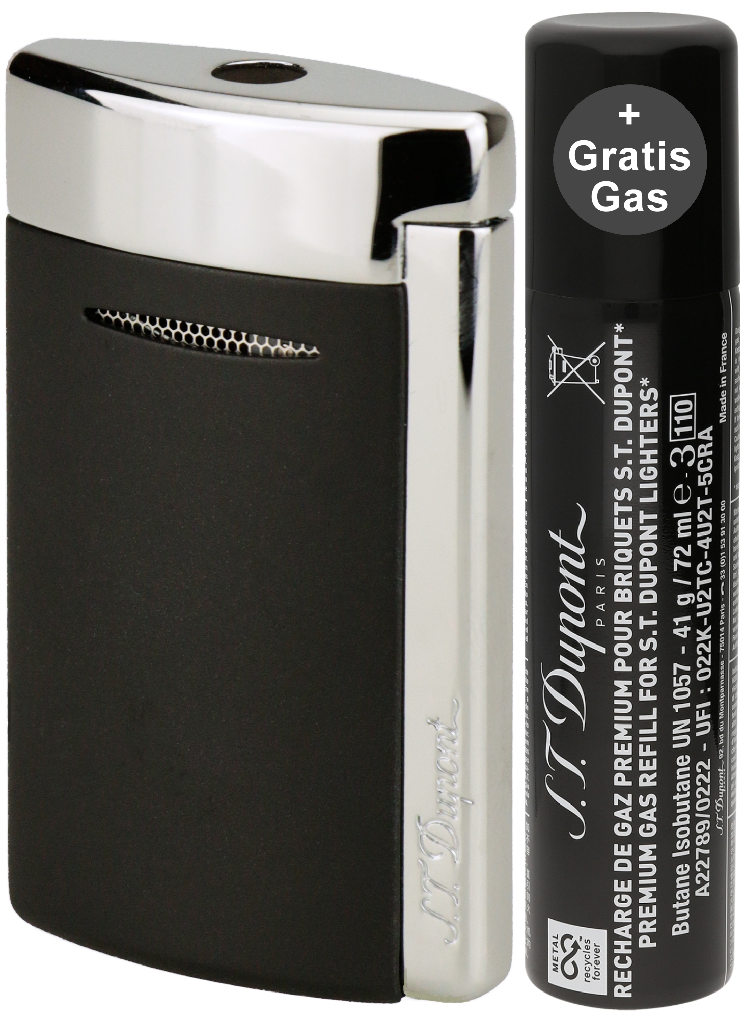 - Gratis-Zugabe: 1 x Dose Feuerzeuggas S.T. Dupont Dose 900430 (schwarz)
