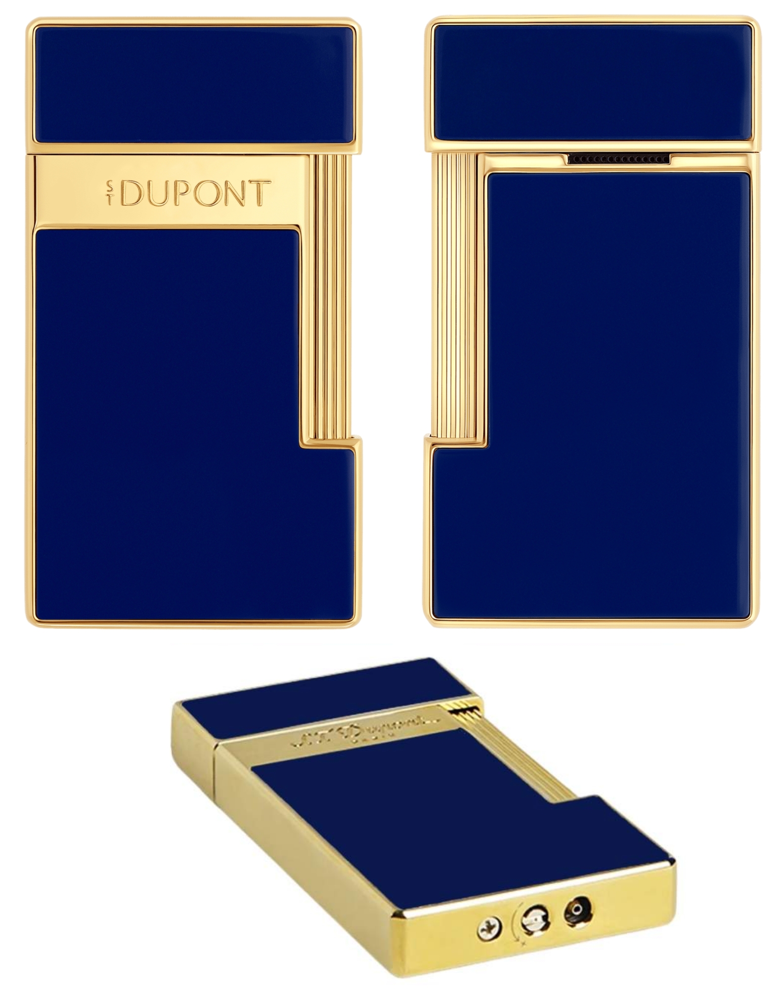 S.T. Dupont Slimmy Feuerzeug blau gold Ansichten - © raucher-xxl.de
