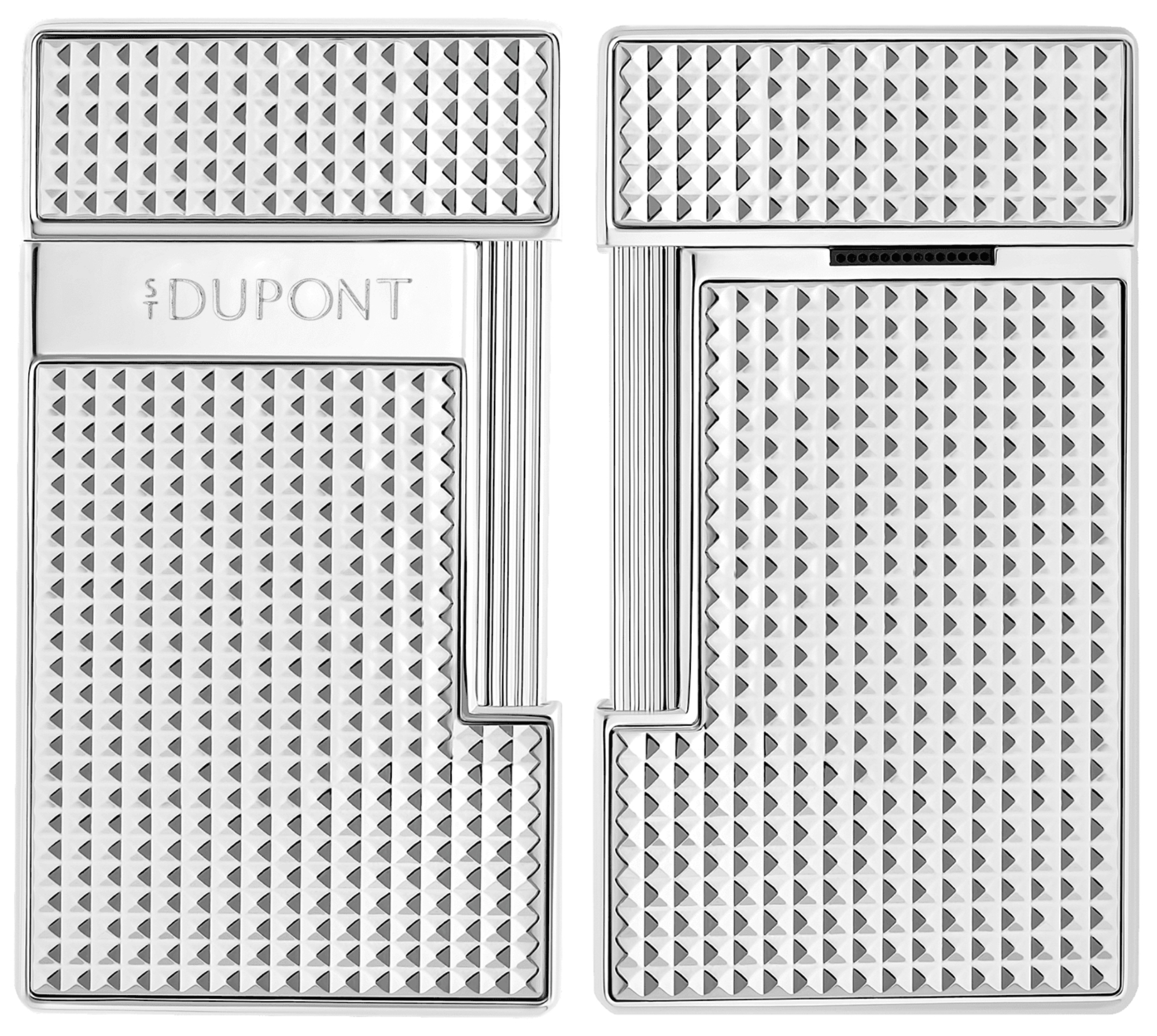 S.T. Dupont der Serie Slimmy im verchromten Gehäuse mit einer Diamantspitzen Struktur.Die neue Feuerzeugedition S.T. Dupont Slimmy ist inspiriert von den bekannten Serien Ligne 2 und Slim 7 und vereinigt jeweils das Beste beider Serien.