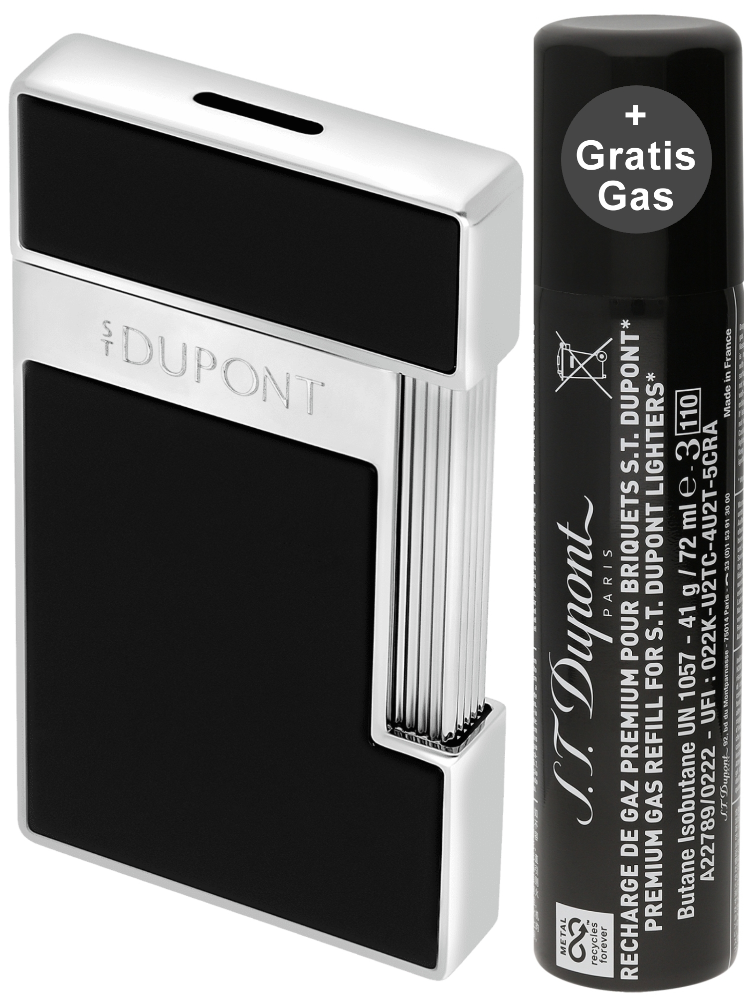 Das Feuerzeug wird mit einer passenden Dose S.T. Dupont Gas schwarz geliefert.Feuerzeug mit neuem S.T. Dupont Logo