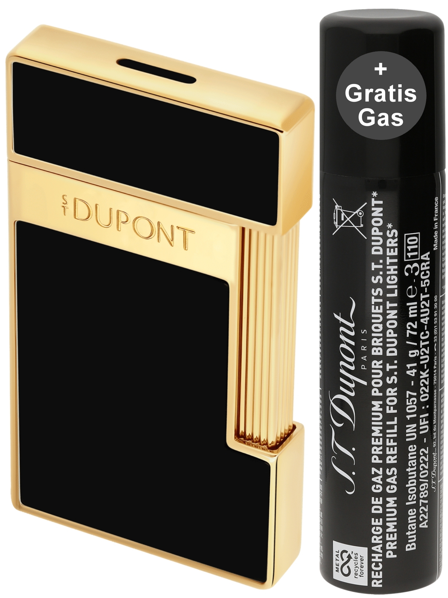 Das Feuerzeug wird mit einer passenden Dose S.T. Dupont Gas schwarz geliefert.Feuerzeug mit neuem S.T. Dupont Logo