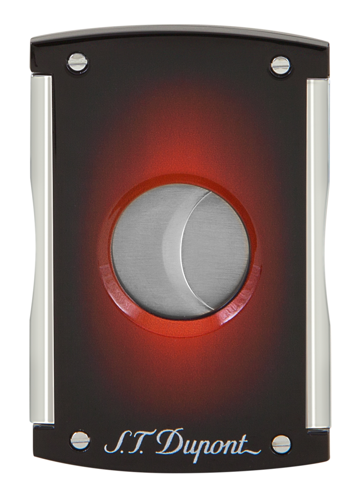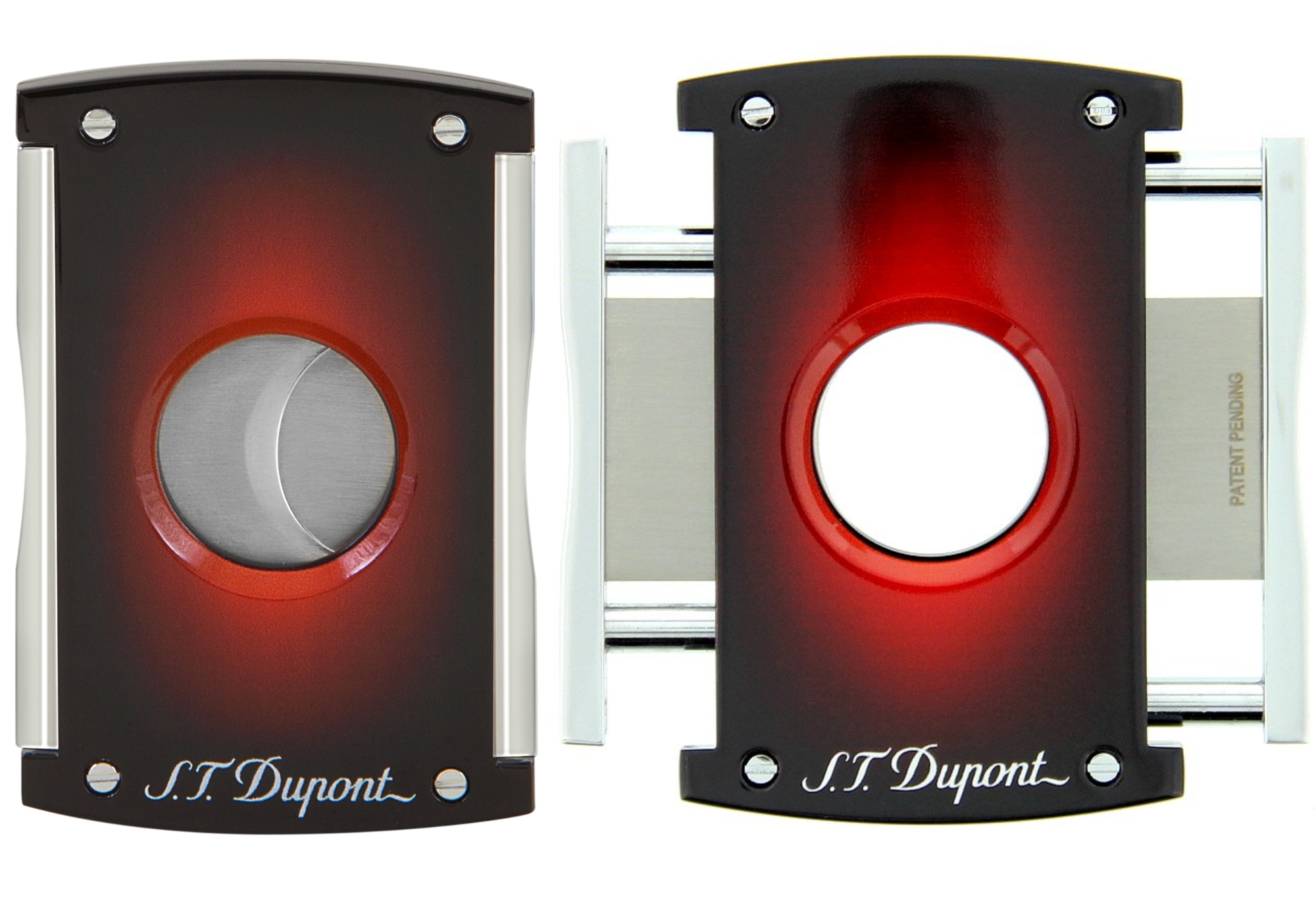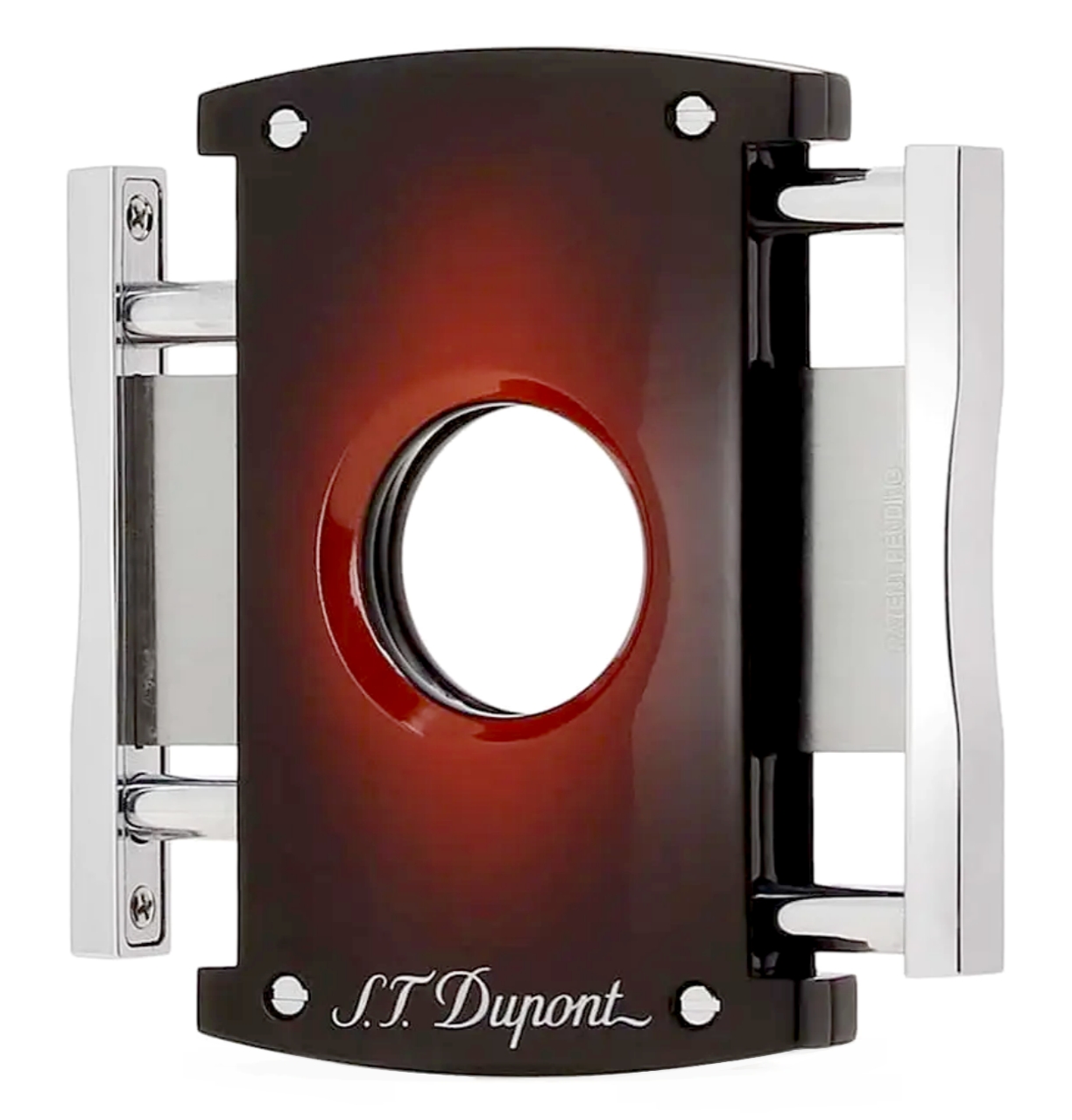 Warum beim Zigarrenschneider sparen? S.T. Dupont-Zigarrenabschneider - was denn sonst?Der exklusive Marken-Zigarrencutter aus dem Hause S.T. Dupont ist sehr edel, praktisch, stilvoll und wird auch hohen Ansprüchen gerecht. Der S. T. Dupont Cigarencutter besitzt ein außergewöhnliches Design in Sunburst Braun-Rot mit einem Farbverlauf und eine hochwertige Technik mit Doppelklinge und Rundungen an der Schneide. Dieser Zigarrenschneider schneidet auch dickere Zigarren sauber ab.