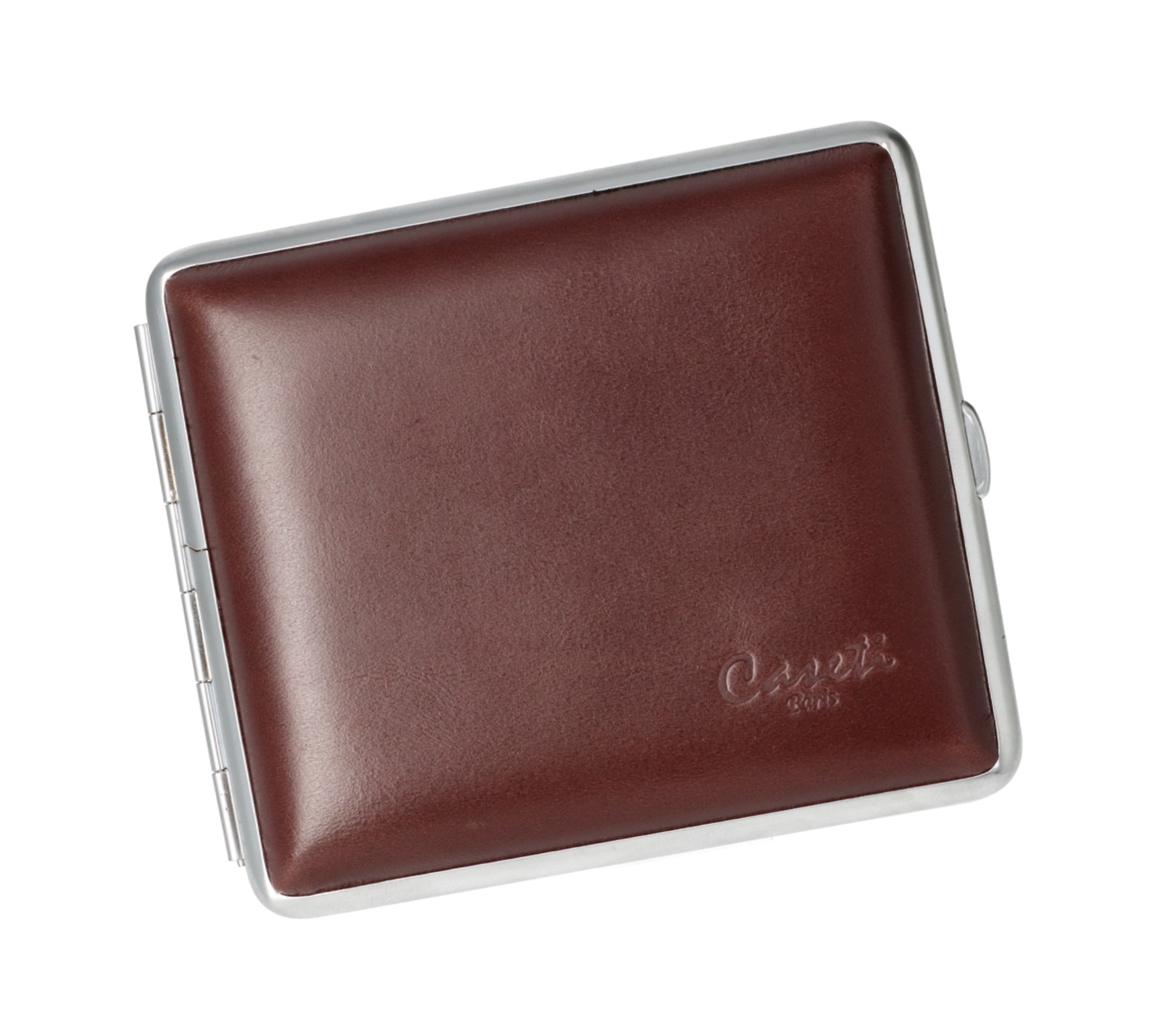 Zigarettenetui Caseti Paris in Leder dunkelbraun und verchromtem Rahmen 18er