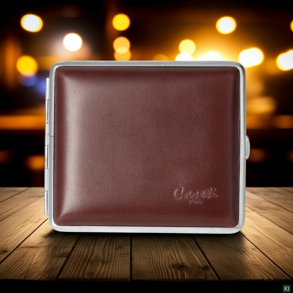 Caseti Zigaretten Etui in Echtleder mit verchromten Metall-Rahmen für 18 Zigaretten mit Gummiband-Halterung.Zigarettenetuis sind im Trend, da sie nicht nur die lästigen Schockbilder auf den Zigarettenschachteln vergessen machen, sondern sie sehen auch noch edel aus. Im Gegensatz zu Zigarrenboxen werden Sie in edlen Materialien und im edlen Design verkauft. Meist sind die klassischen Zigarettenetuis rechteckig, mit abgerundeten Kanten und lassen sich durch Drücken des Verschlussknopfes aufklappen. Im Etui befinden sich geschickte Gummizüge mit denen die Zigaretten festgehalten werden.