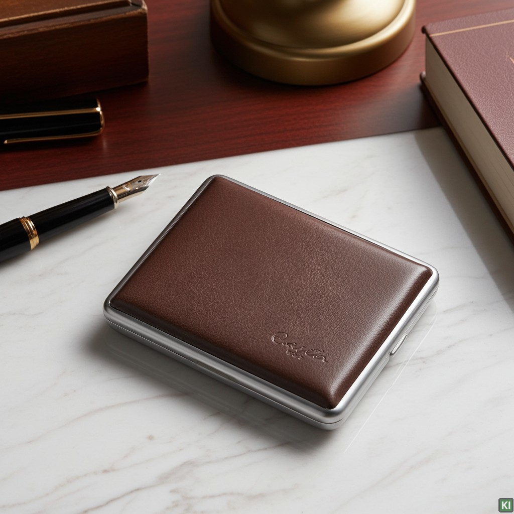 Zigarettenetuis von Caseti aus Leder oder Chrom.